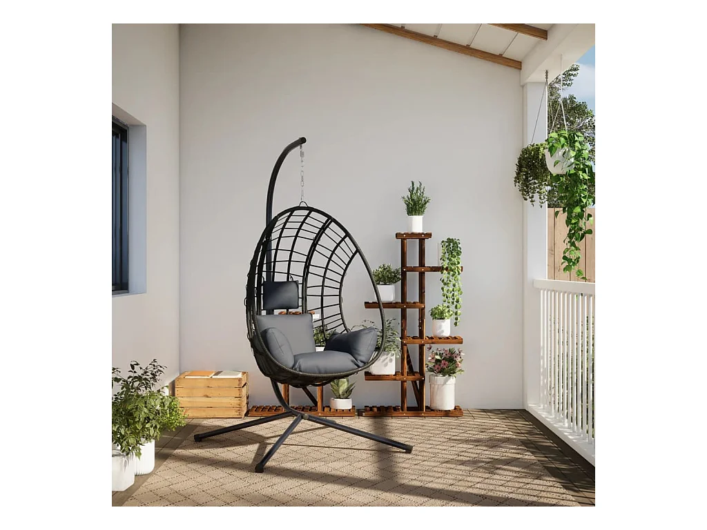 Fauteuil suspendue œuf support anthracite rotin et acier FR525574