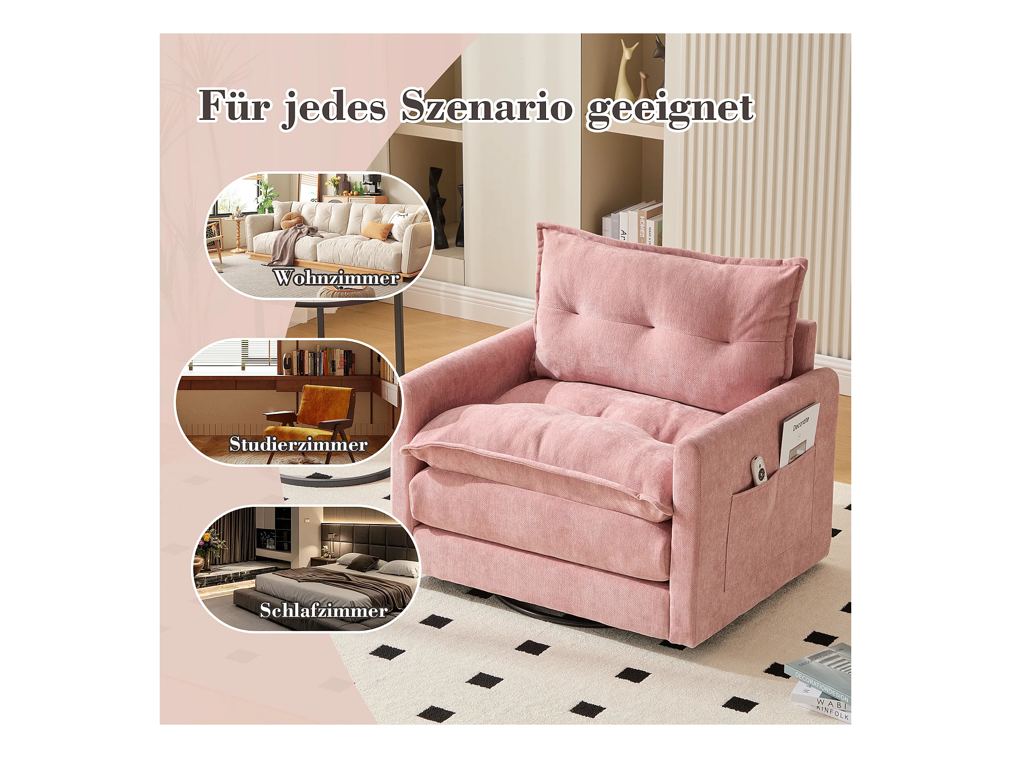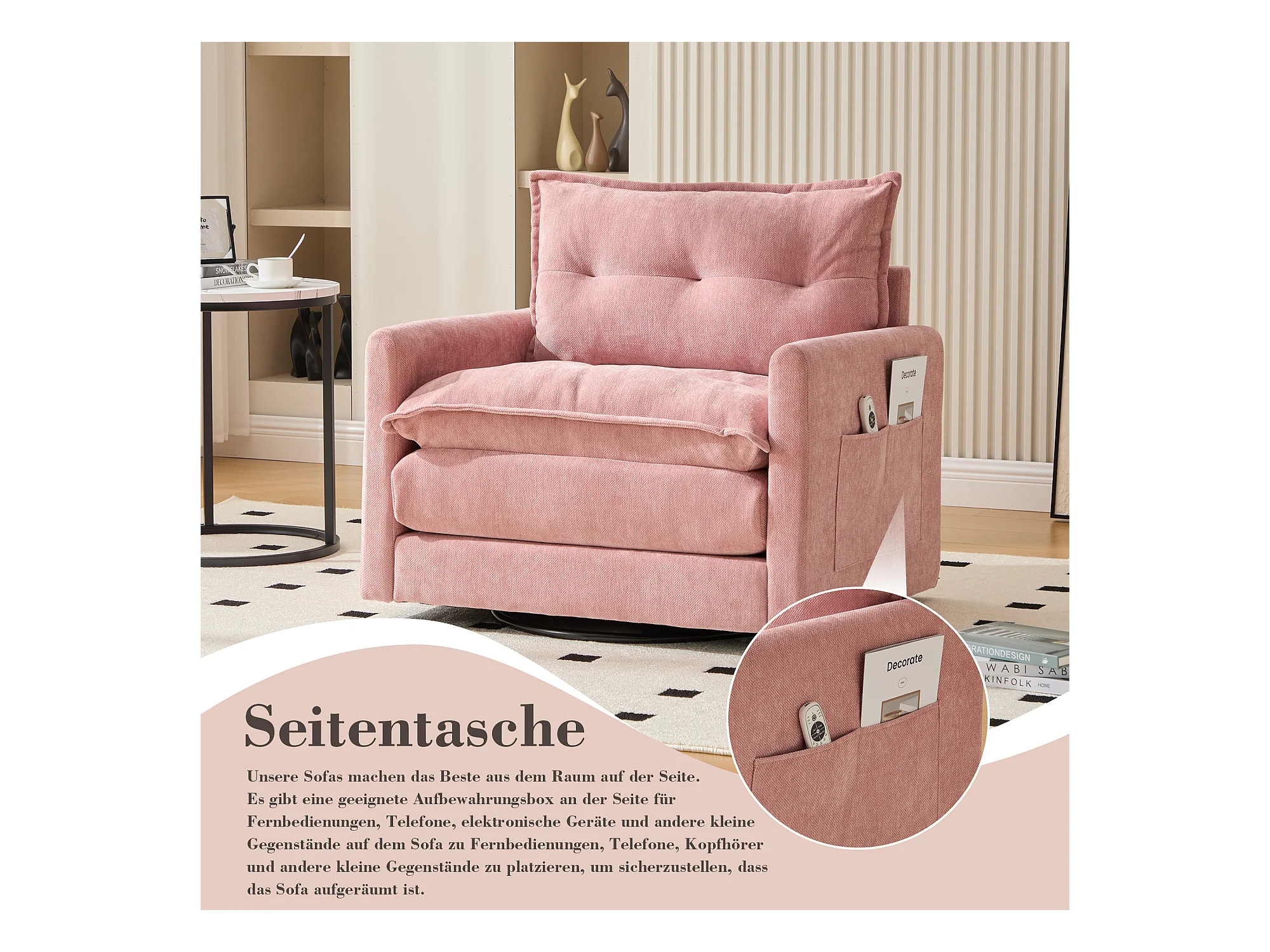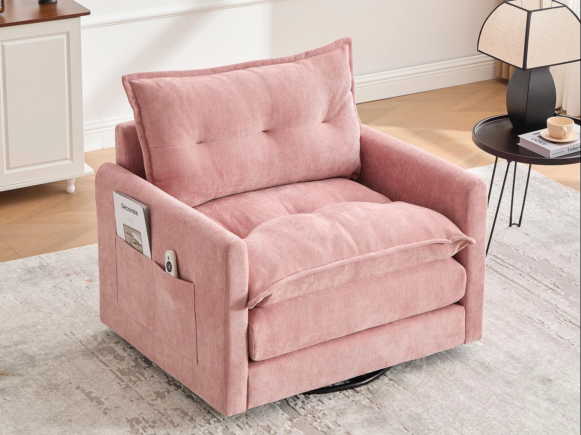 Fauteuil pivotant 360° robe – double couche d’assise, confort optimal et poche latérale – idéal pour salon, chambre et bureau