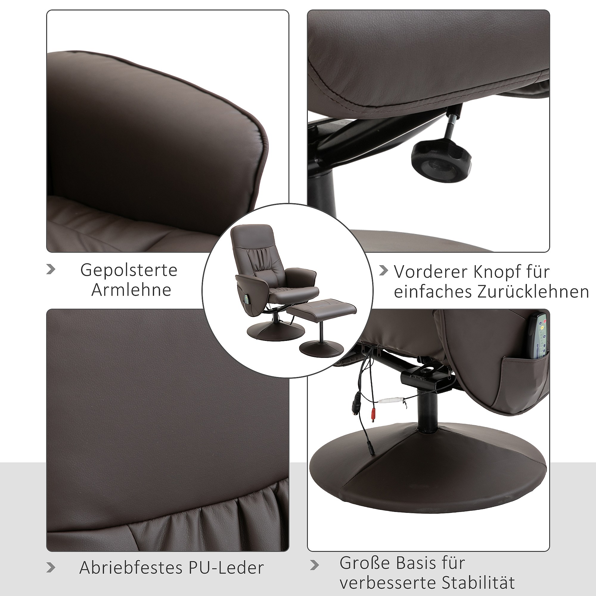 Fauteuil TV avec fonction massage, inclinaison 145°, cuir artificiel, marron (76x81x105 cm)