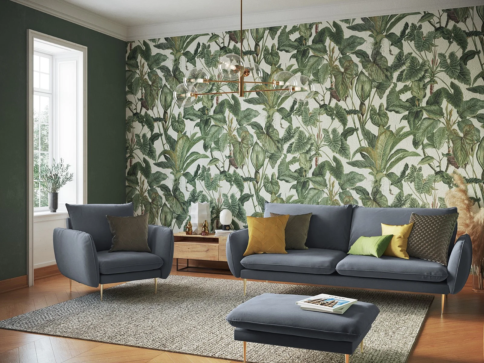 Cosmopolitan Design - Fauteuil "Vienna" en velours bleu gris - 97x94x95cm