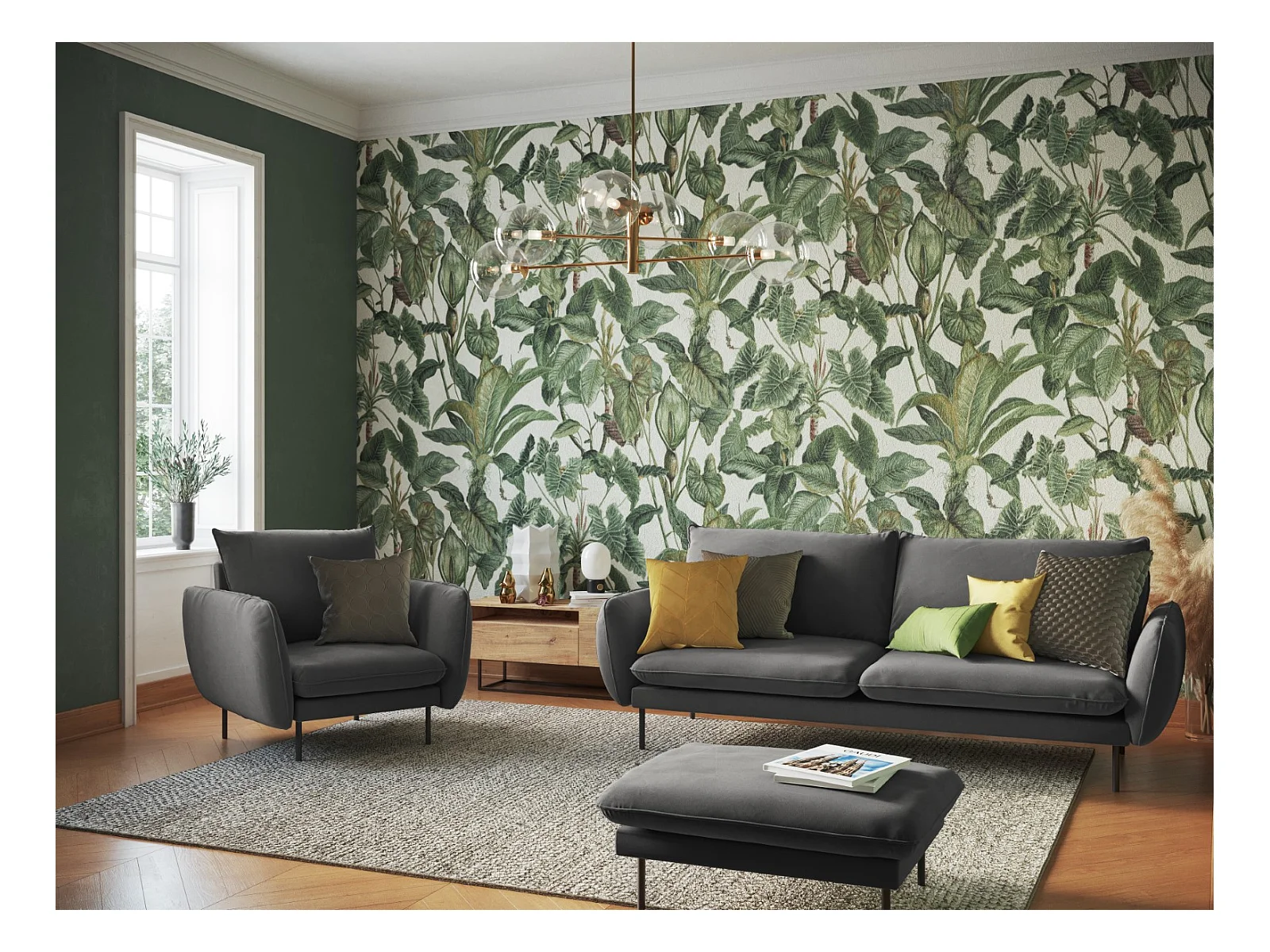 Cosmopolitan Design - Fauteuil "Vienna" en velours gris - 97x94x95cm