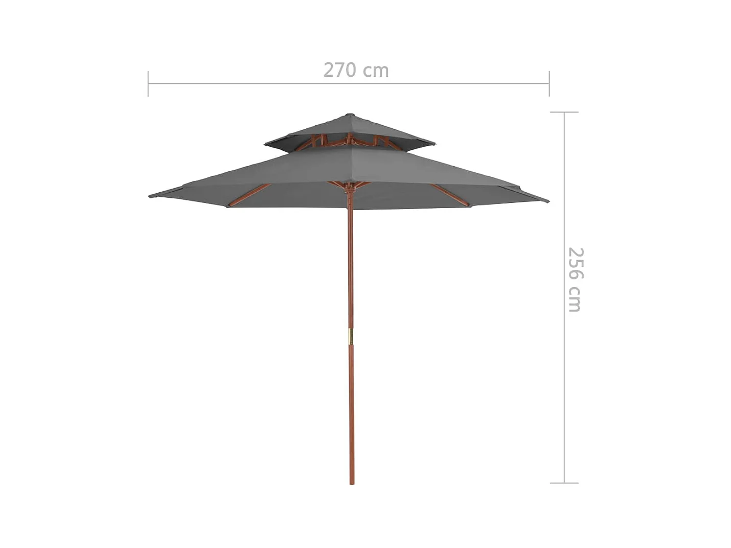 Faylyn Parasol à deux étages avec mât en bois 270 cm anthracite