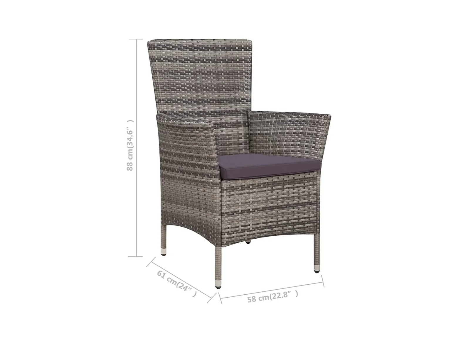 Fea Ensemble à manger d'extérieur 5pcs coussins résine tressée gris