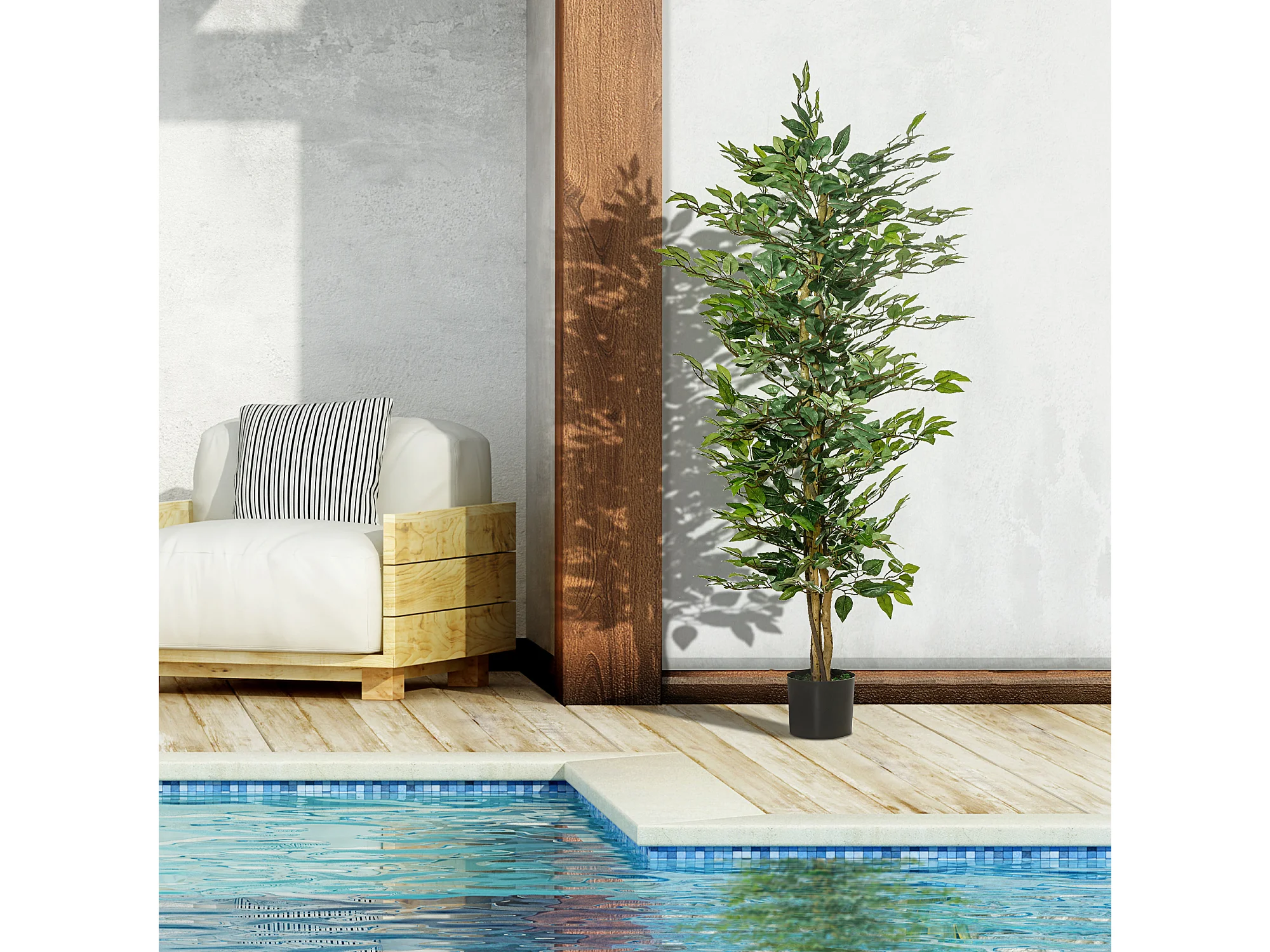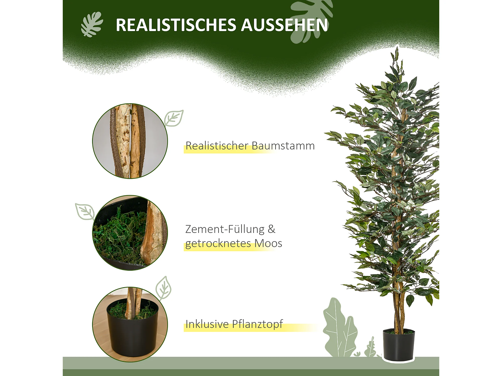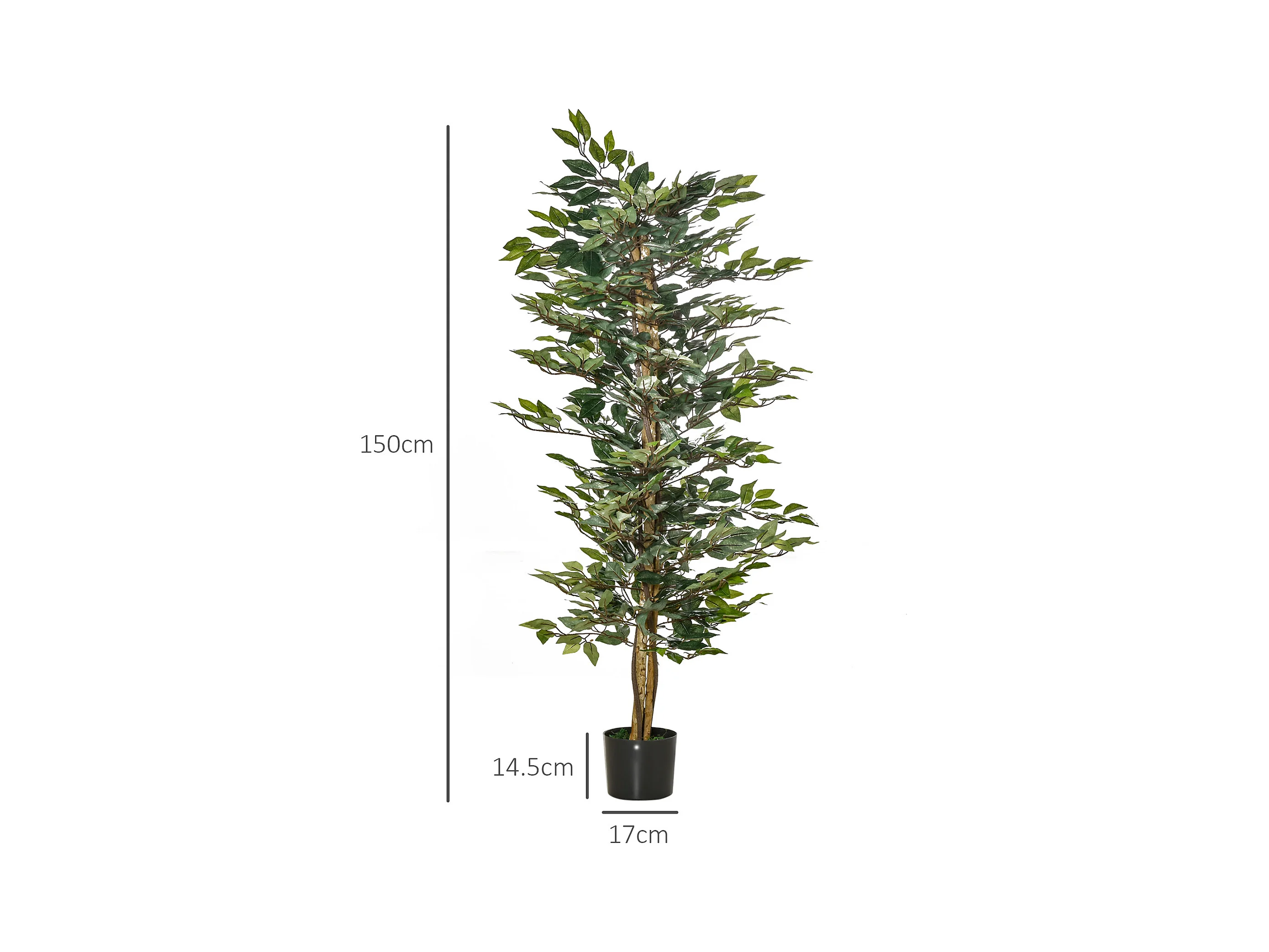 Ficus artificiel décoratif, pot plastique cimenté, vert naturel (17x17x150cm)