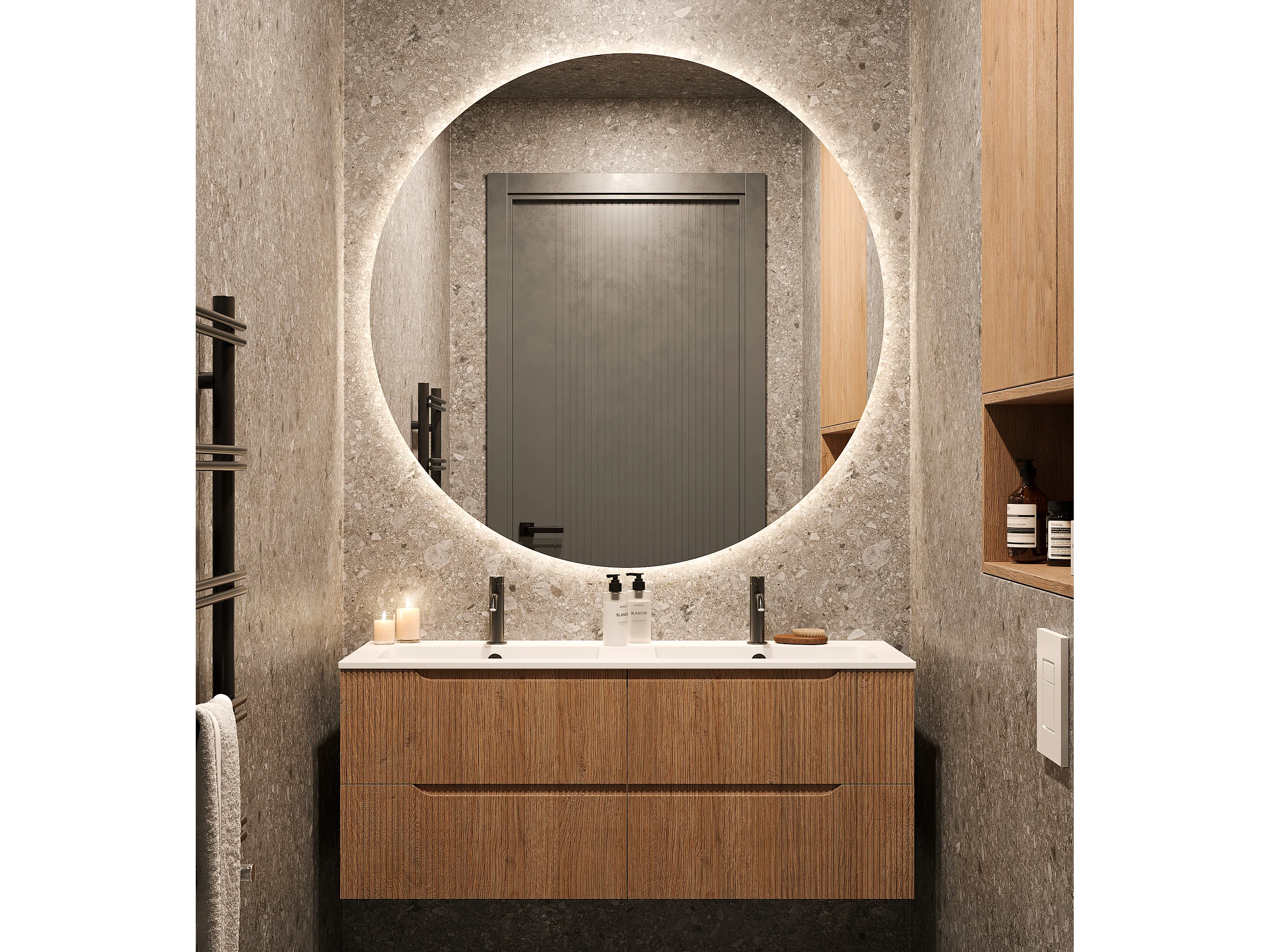 Fil Poli Miroir Rond Lumières Led Rétroéclairées