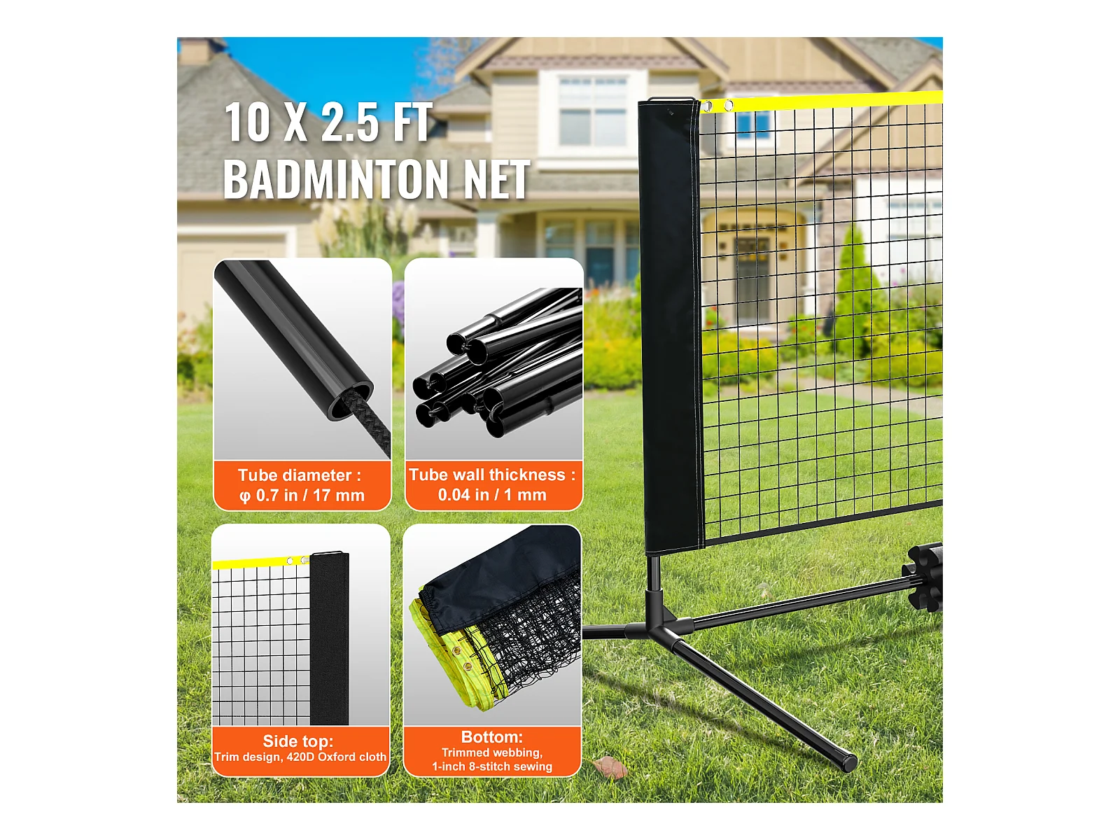 Filet de Badminton, SucceBuy Ensemble de Volley-ball et de Badminton d'Extérieur, Filet Portable, Hauteur Réglable