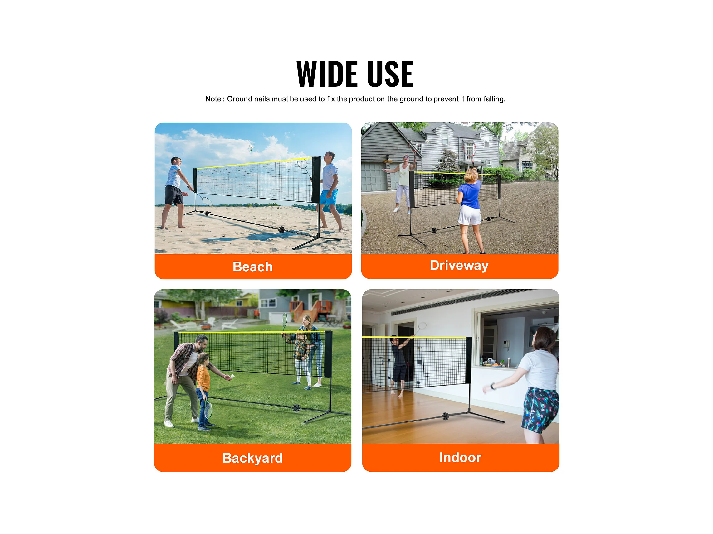 Filet de Badminton SucceBuy de Ensemble, 427 cm, Filet de Tennis de Pickleball de Volley-Ball Extérieur Portable