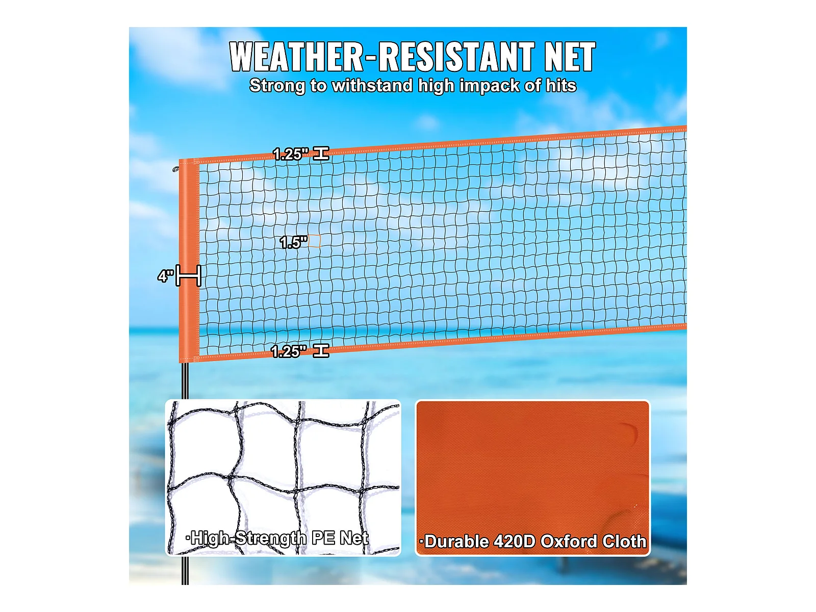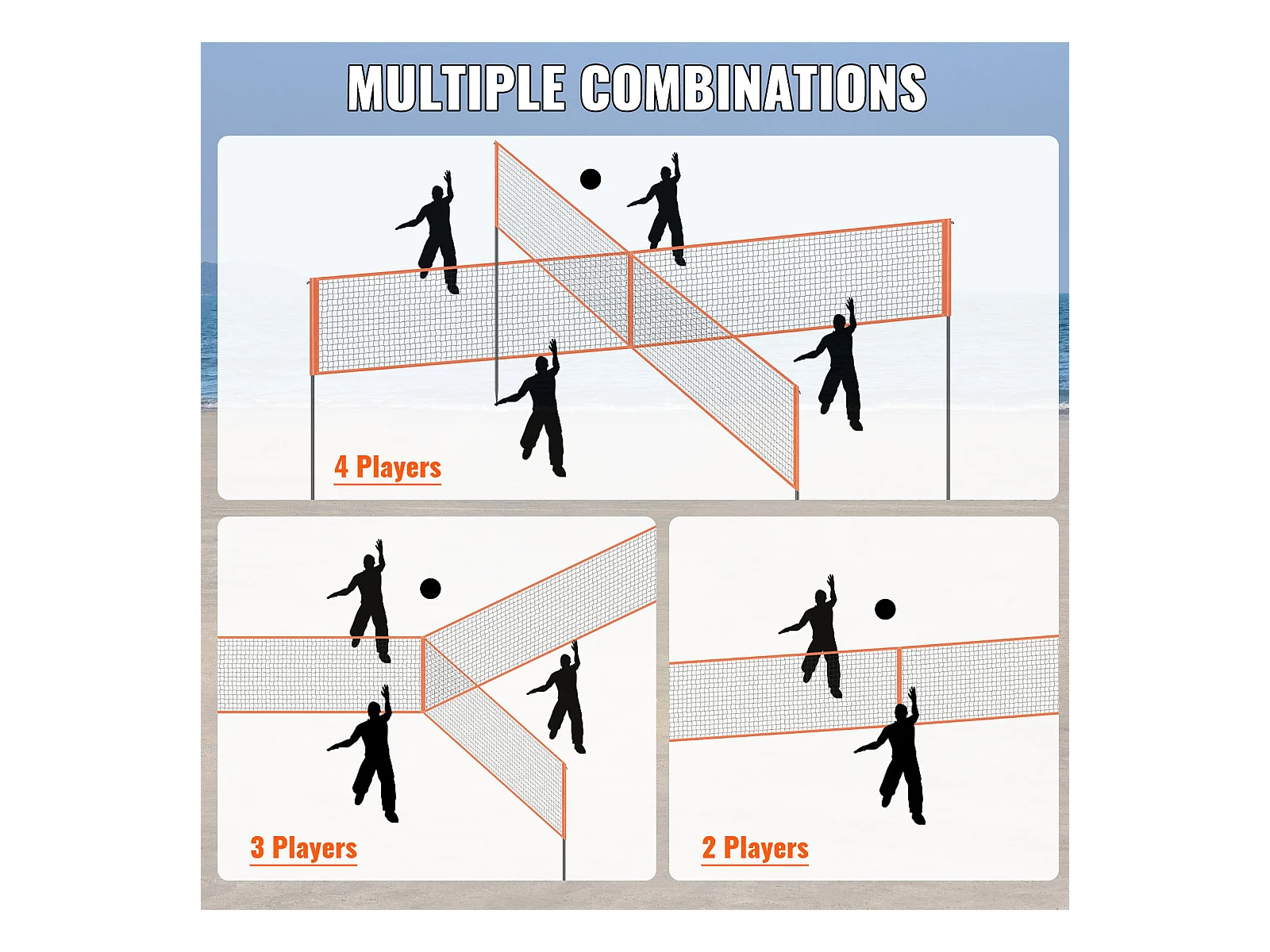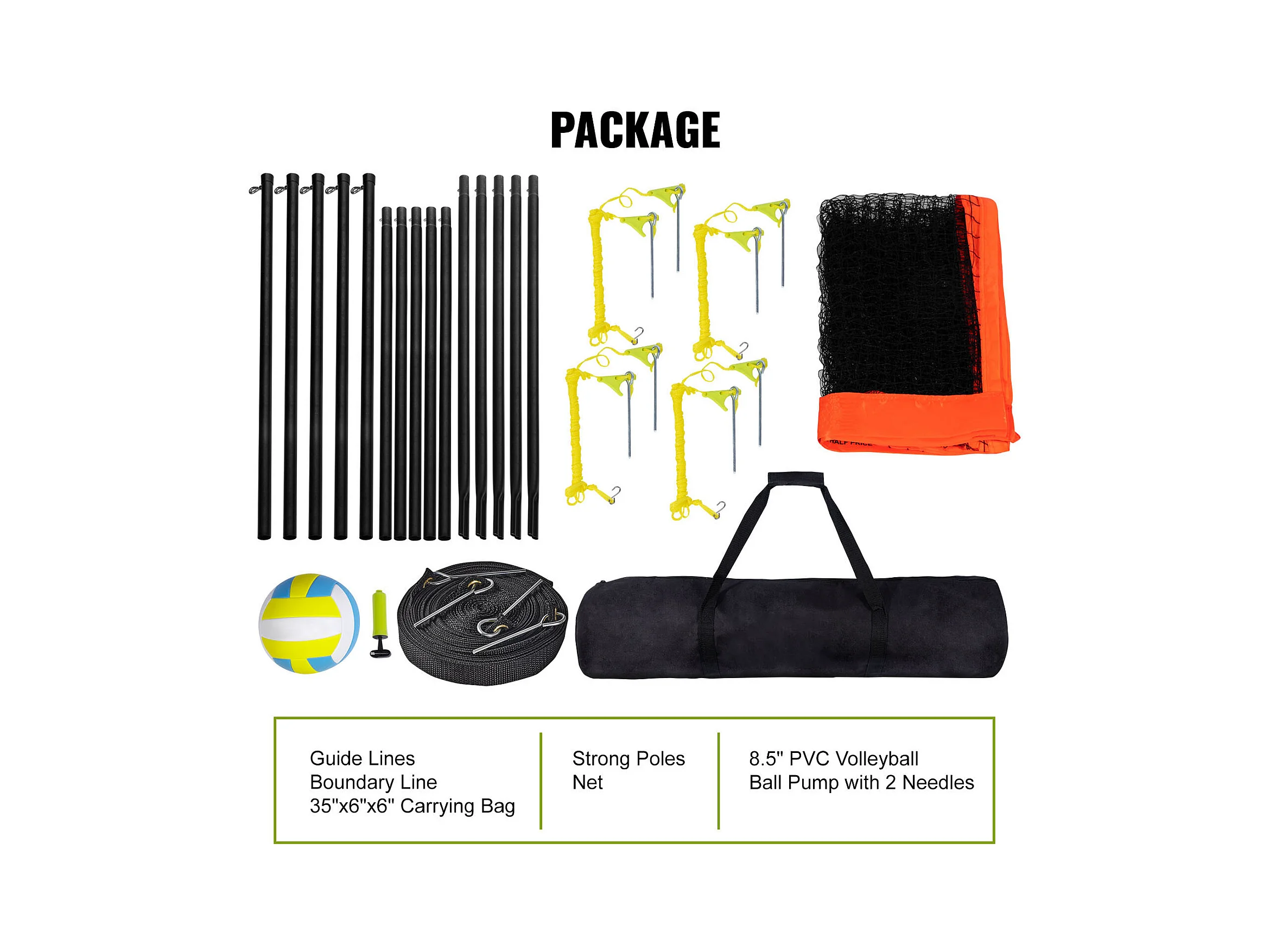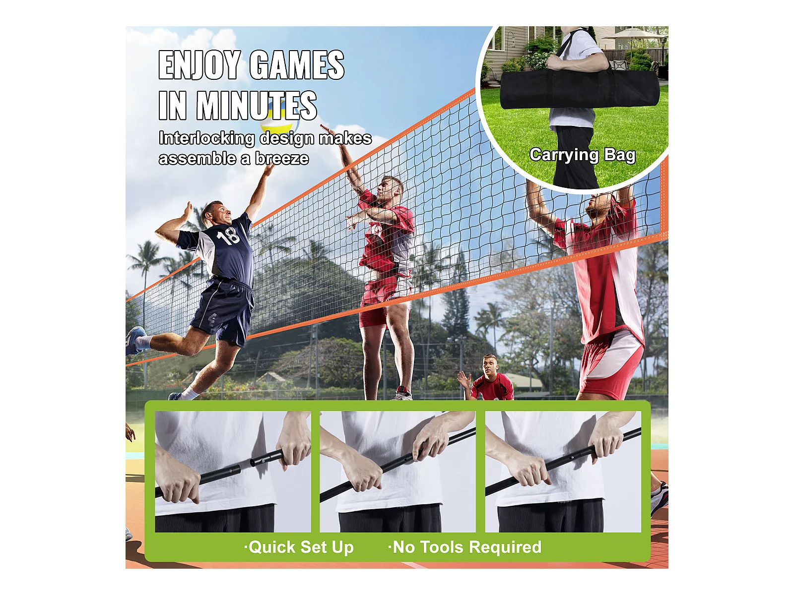 Filet de Volley-Ball SucceBuy Portable D'extérieur de Système, avec Poteaux à Hauteur Réglable, sac de Transport pour Jardin, Plage, Pelouse