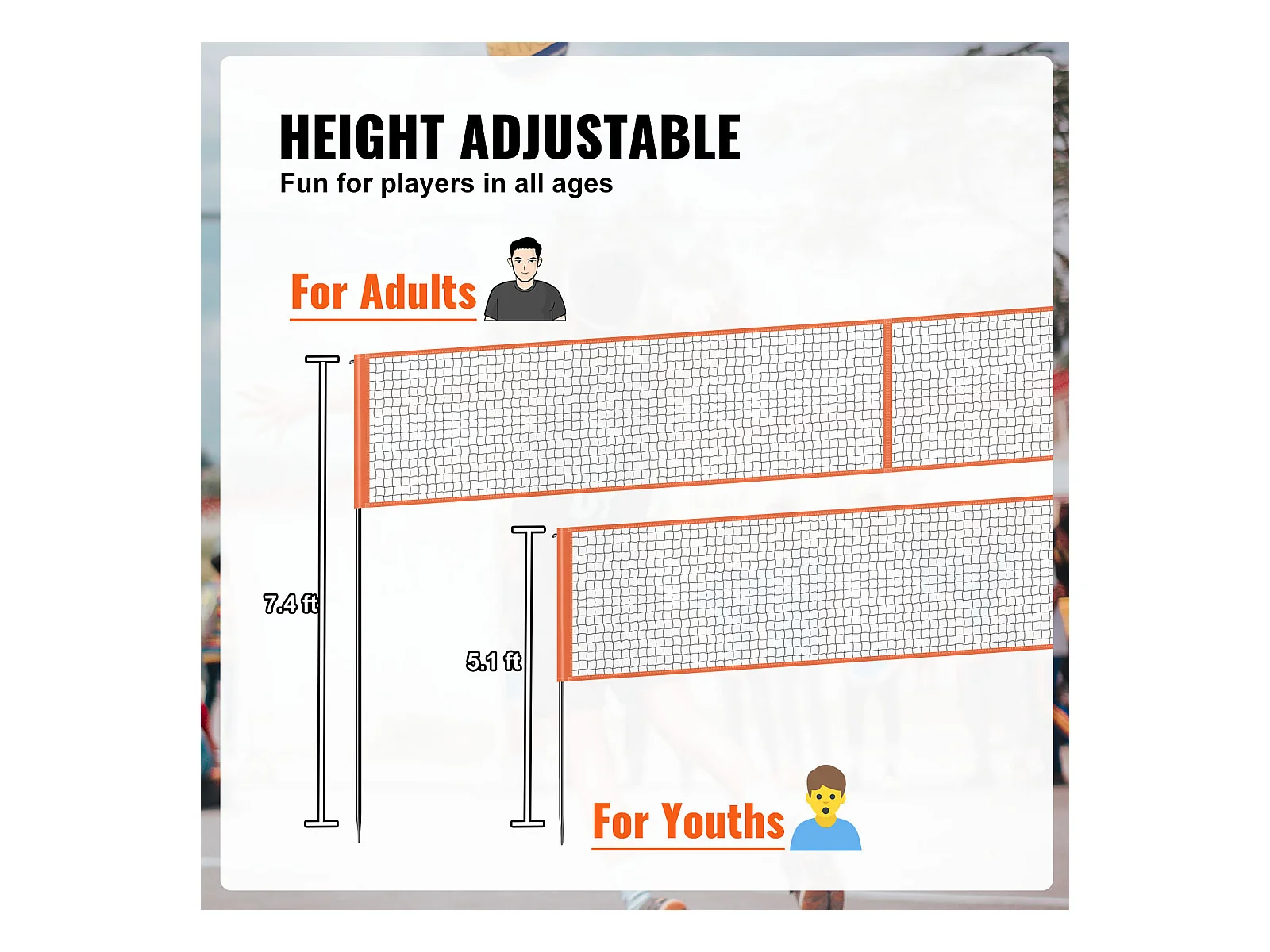Filet de Volleyball SucceBuy 2 en 1, Filet d'Entraînement de Volleyball Portable Réglable en Hauteur, pour Service en Intérieur et en Extérieur dans le Jardin