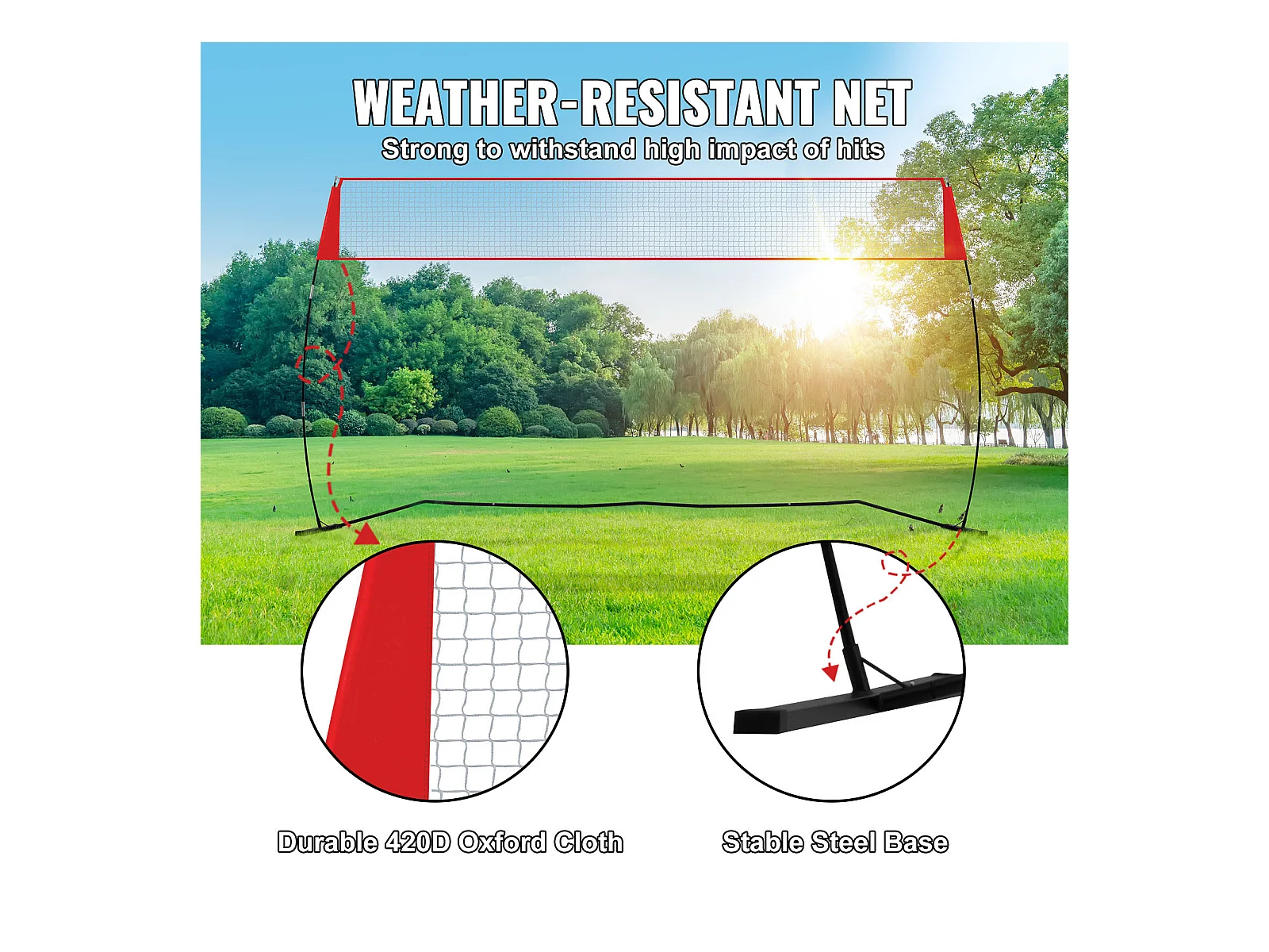 Filet de Badminton, SucceBuy Ensemble de Volley-ball et de Badminton d'Extérieur, Filet Portable, Hauteur Réglable