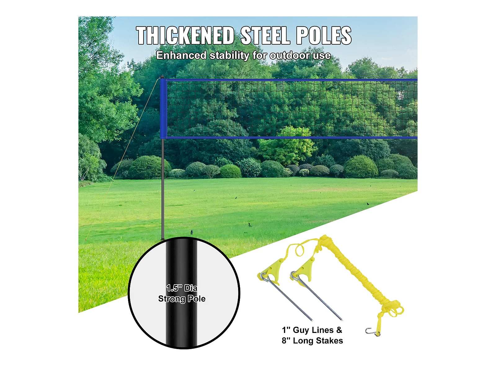 Filet de Badminton, SucceBuy Ensemble de Volley-ball et de Badminton d'Extérieur, Filet Portable, Hauteur Réglable