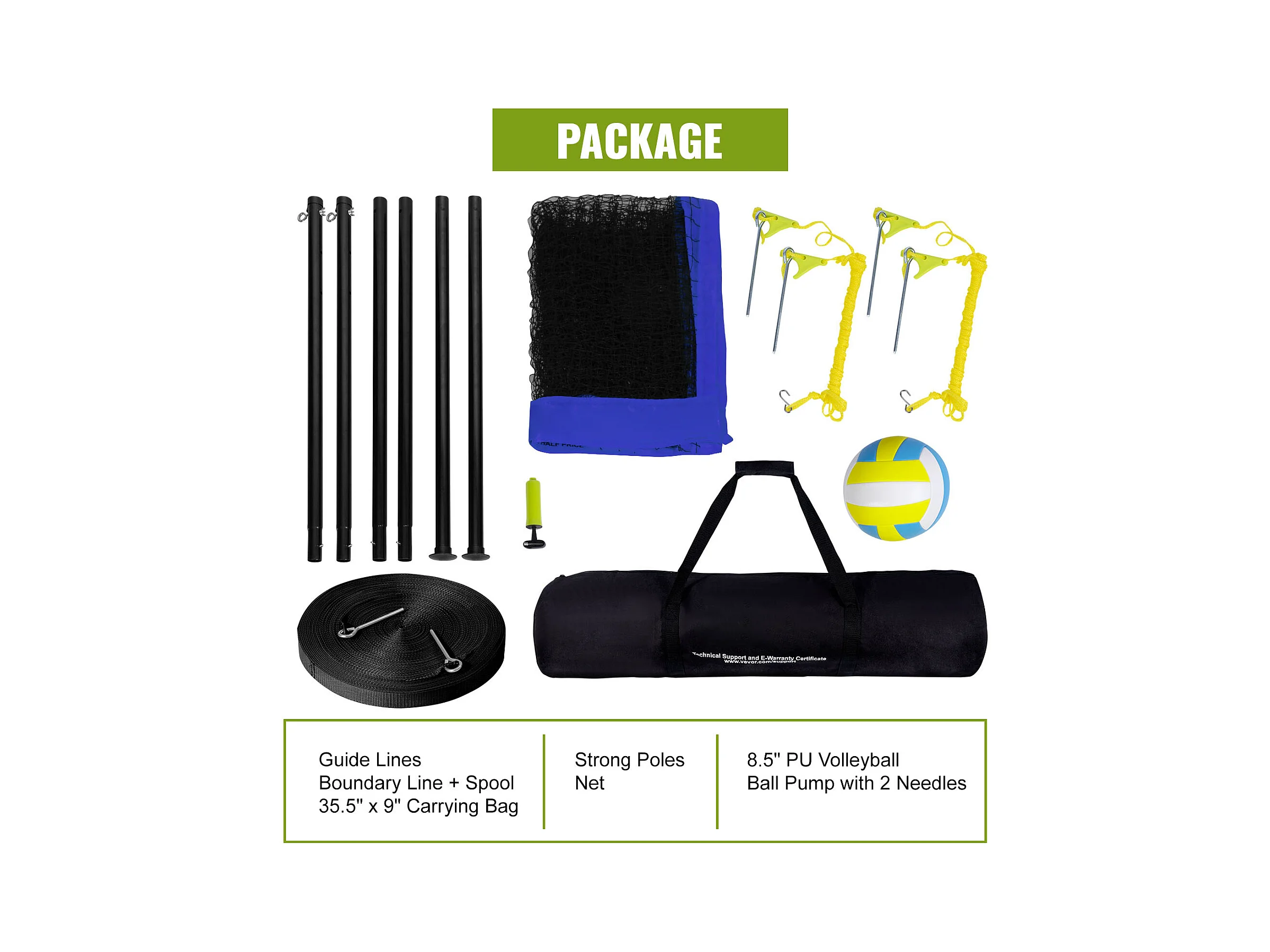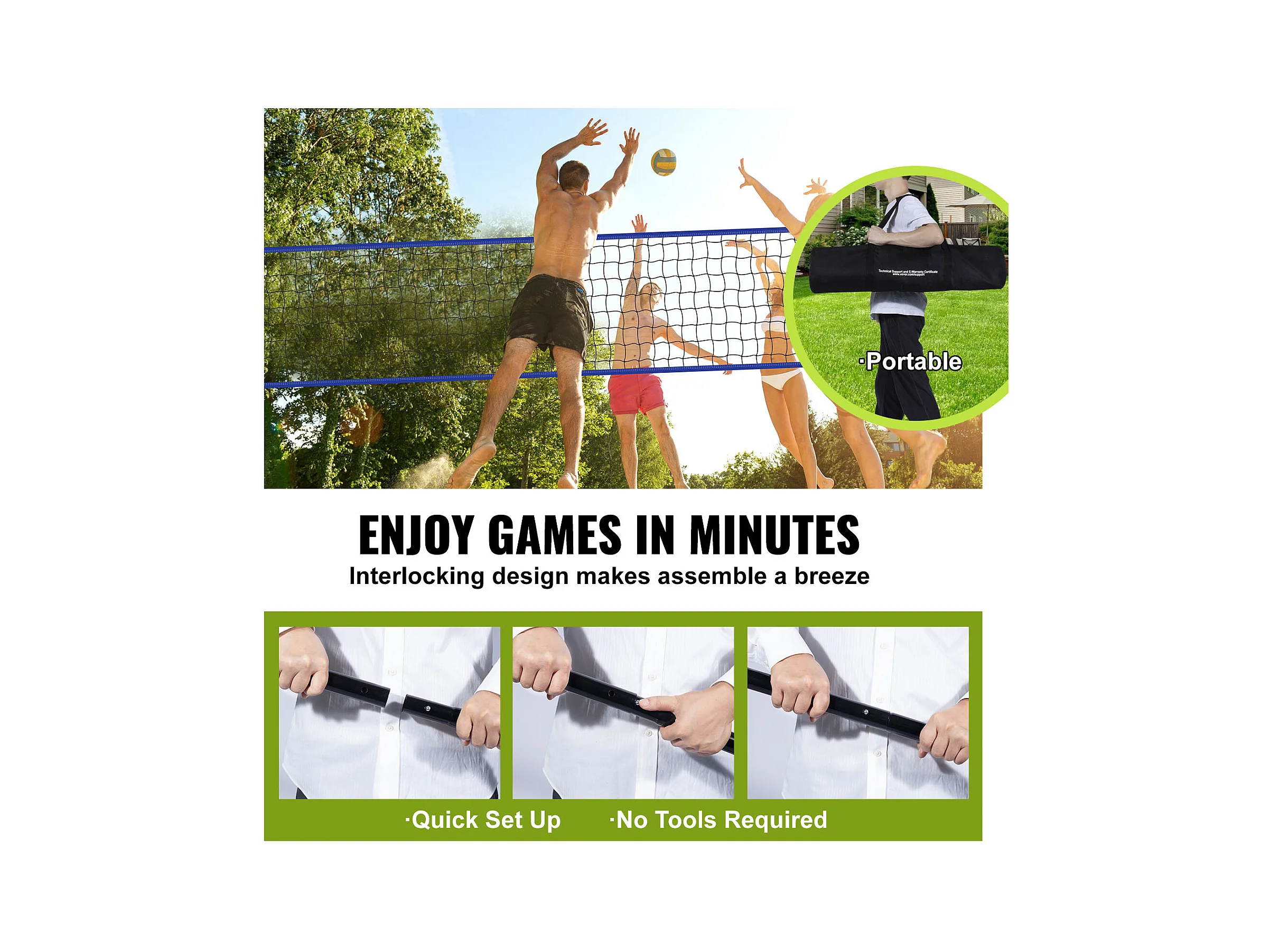 Filet de Volley-Ball SucceBuy Portable D'extérieur de Système, avec Poteaux à Hauteur Réglable, sac de Transport pour Jardin, Plage, Pelouse
