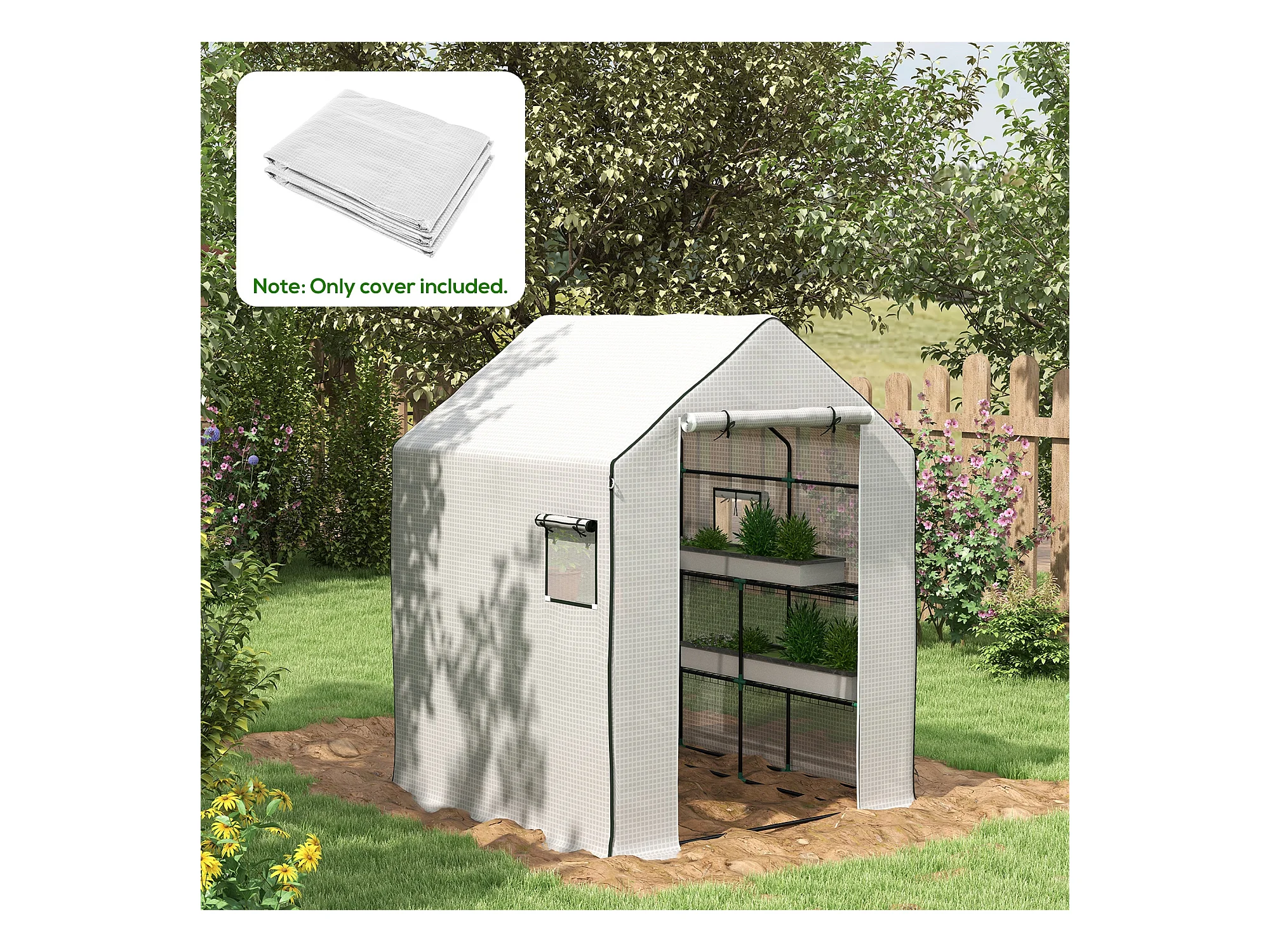 Housse de remplacement pour serre, PE renforcé avec protection UV, porte à enroulement, fenêtre latérale, blanche (140x73x190cm)