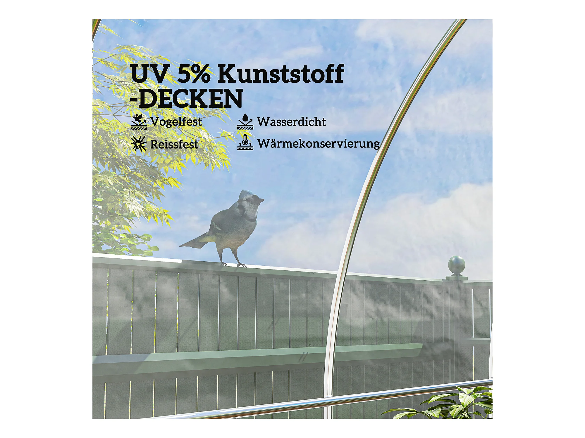 Serre tunnel avec fenêtres à fermeture éclair, cadre en acier, PVC transparent, 395 x 100 x 80 cm (395x100x80 cm)