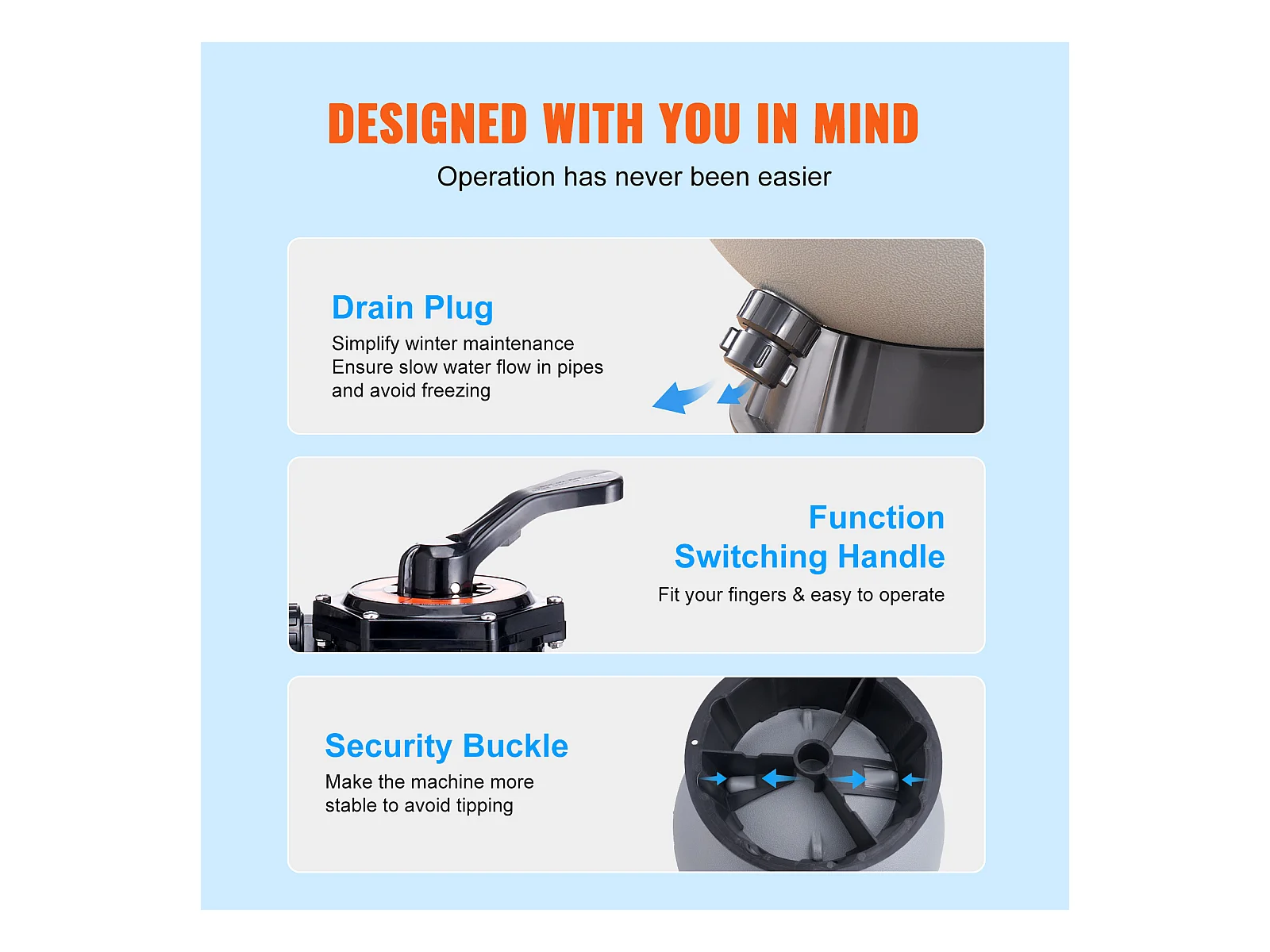 Filtre à Sable SucceBuy 48.26cm, Filtre de Piscine avec Vanne à 7 Voies, pour Piscines Hors Sol et Enterrées