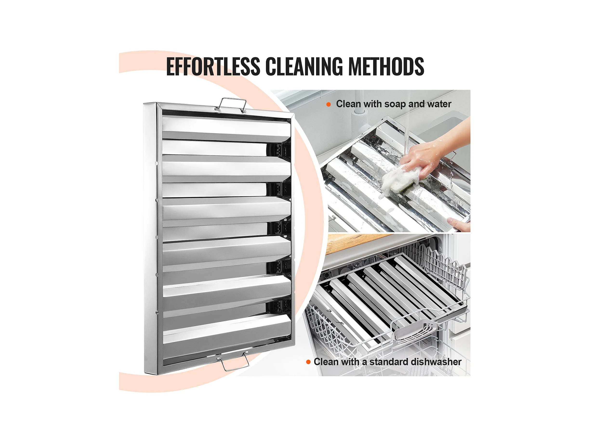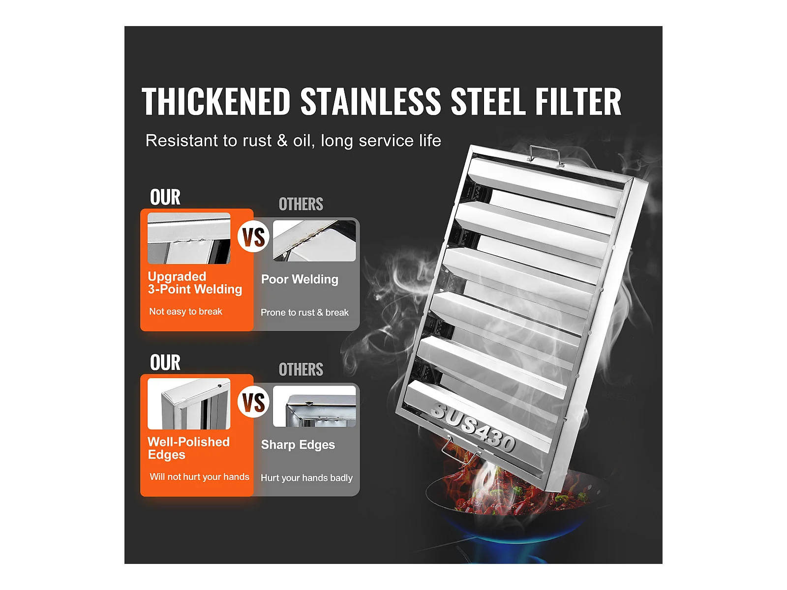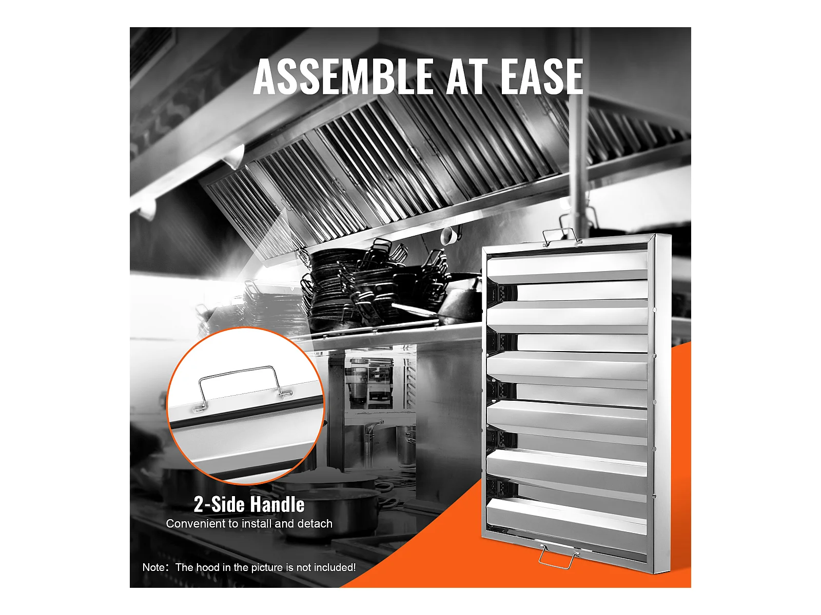 Filtre de Hotte Commercial SucceBuy, 62.2cm x49.5cm, Filtre à Chicane en Acier Inoxydable pour Graisse, pour Hottes de Restaurant, Lot de 2