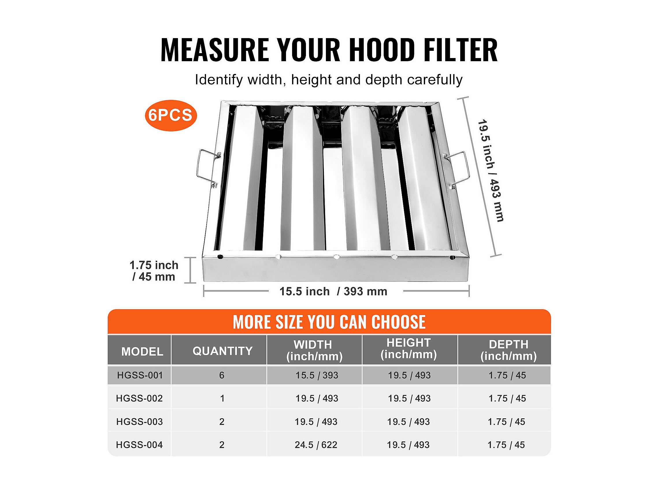 Filtre de Hotte SucceBuy Lot de 6 Filtres pour Hotte Commerciale 39.4cm x 49.5cm en Acier Inoxydable