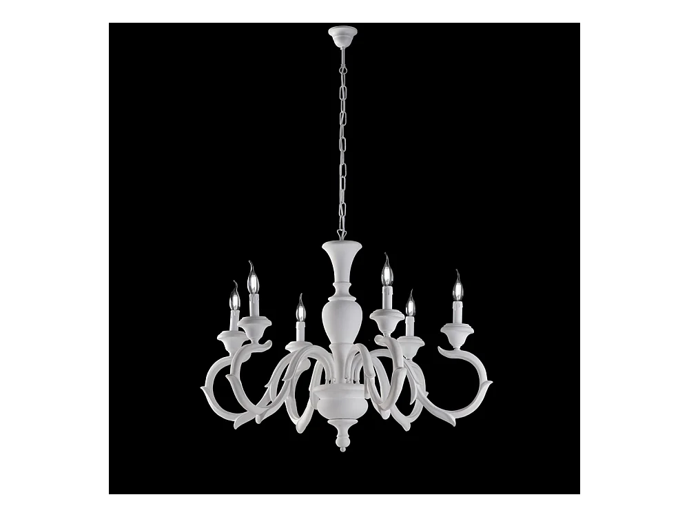 Fiorenza Lustre Shabby en bois blanc 6 lumières 125 d.91 BL172-6-BCO
