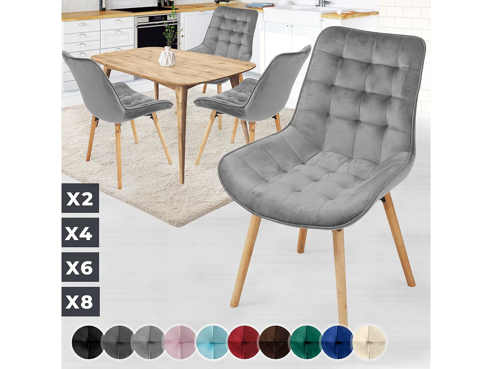 Floraya - ensemble 4 chaises de salle à manger branché en velours - gris clair