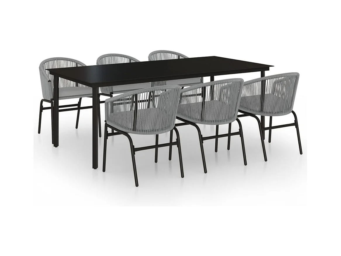 Timothy Ensemble à manger de jardin 7 pcs Résine tressée Gris
