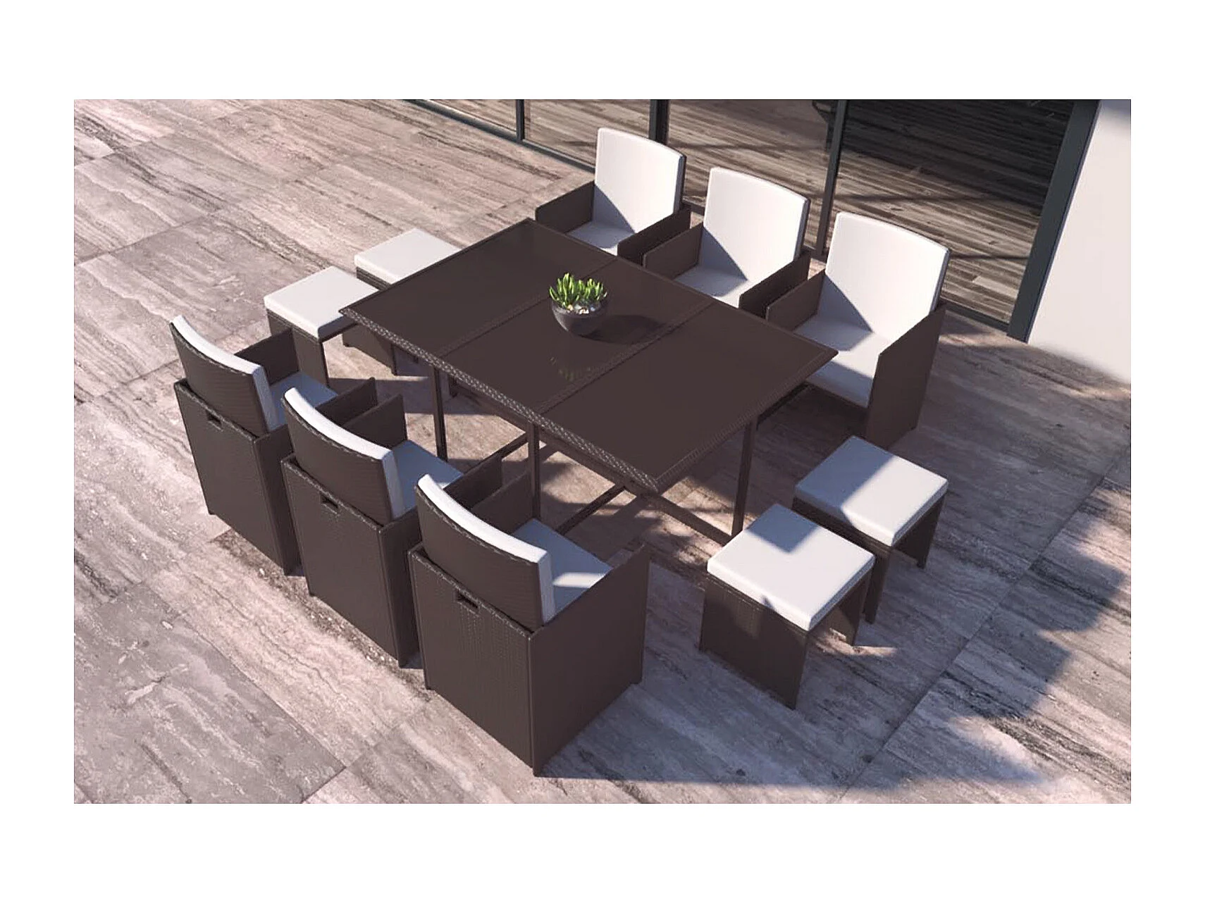 Salon de jardin encastrable Marron-Blanc 10 places FLORIDA