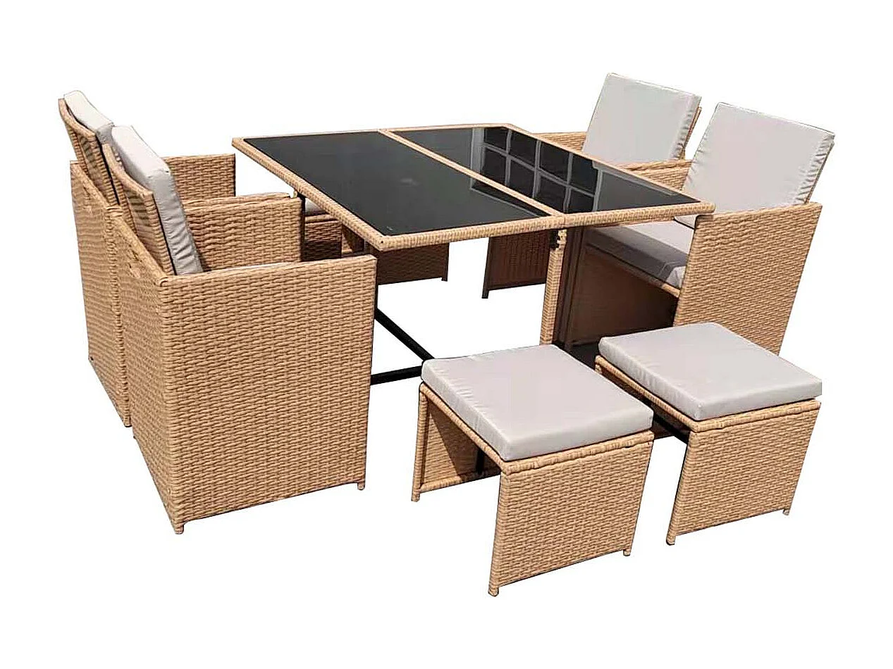 FLORIDA - Salon de jardin résine tressée naturel 8 places