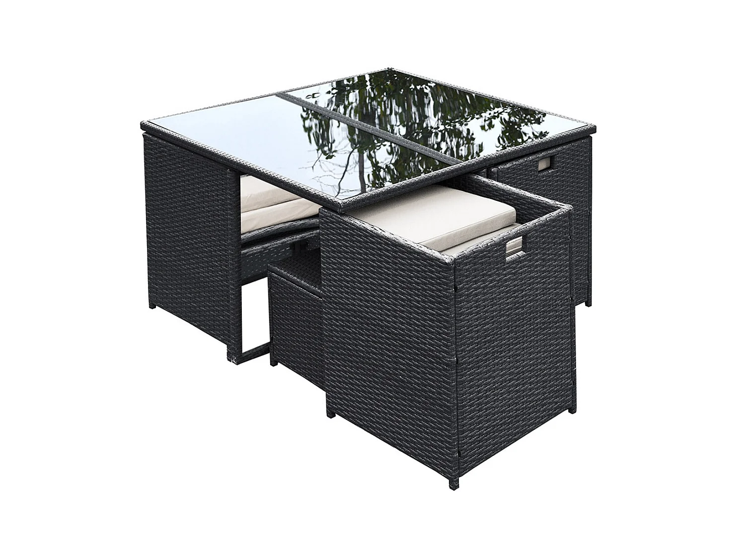 Ensemble à manger de jardin 9 pièces coussins noir résine tressée