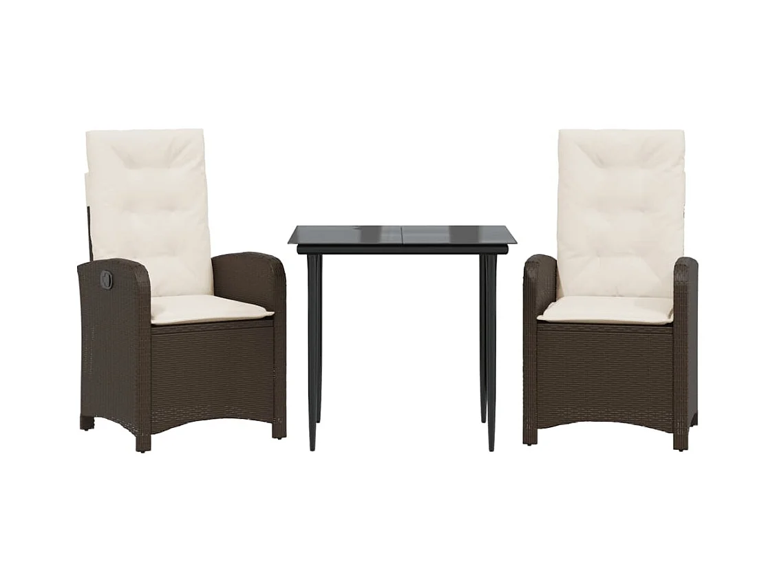 Birchwood Ensemble à manger de jardin 3 pcs et coussins marron poly rotin