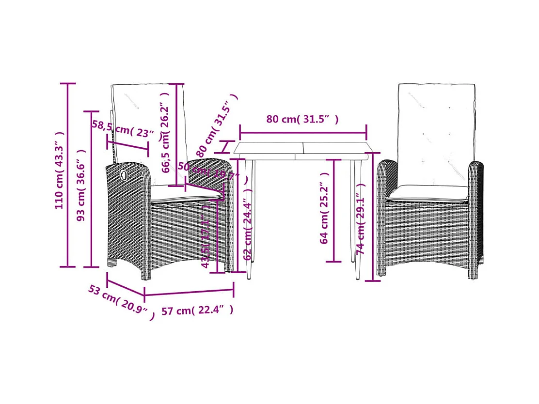 Seth Ensemble à manger de jardin 3pcs Résine tressée Marron