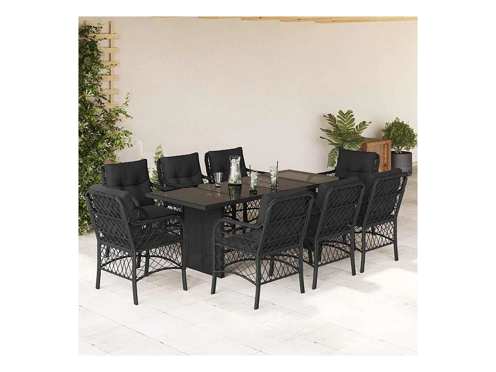 Altamura Ensemble à manger de jardin 9pcs coussins noir résine tressée