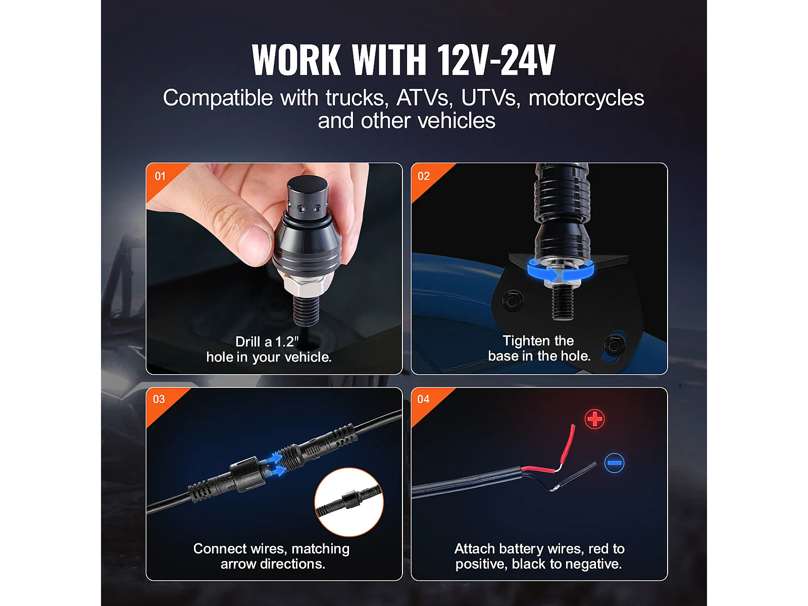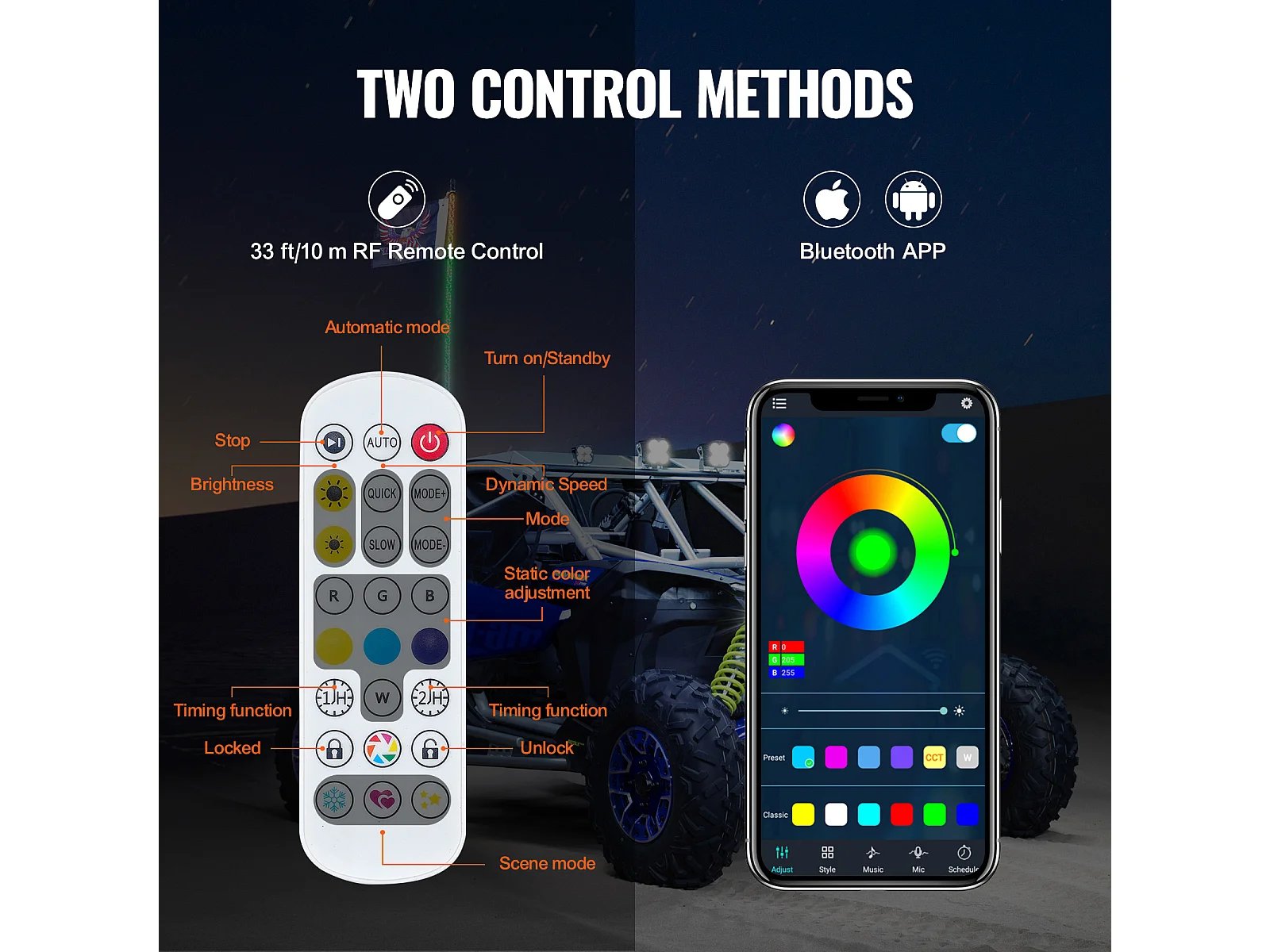 Fouet Lumineux LED SucceBuy Lumière de Fouet LED 1PC 122 cm RGB Spiral Antenne Lumière Télécommande App pour ATV UTV RZR