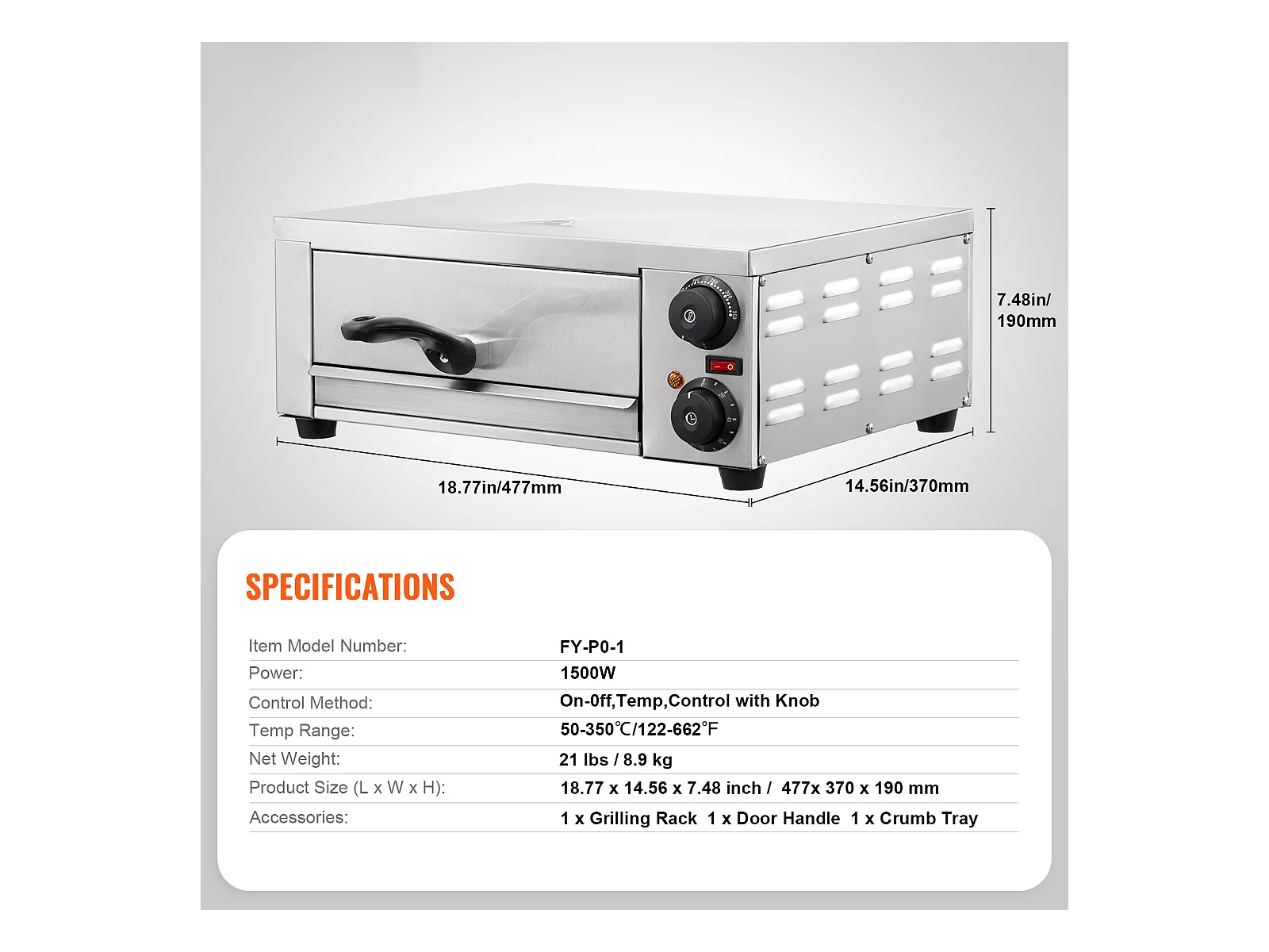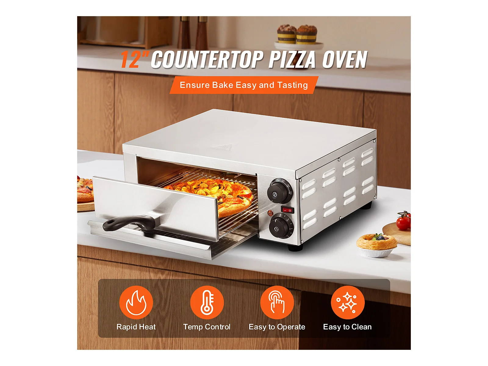 Four à Pizza SucceBuy Électrique de Comptoir, Taille de 30CM, 1500 W, avec Température Réglable et Minuterie de 0 à 120 Minutes