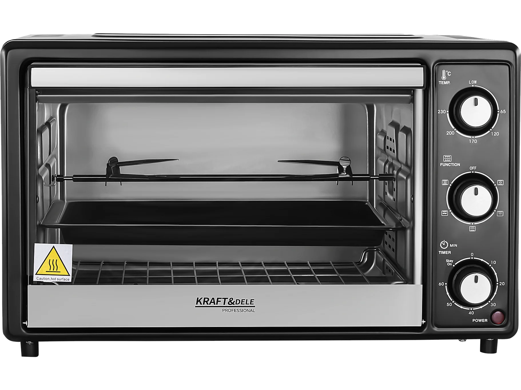 Mini four 21L avec fonction rotisserie, 3 modes de cuisson, inox et verre, 100°C-230°C, (46x38.5x29cm)