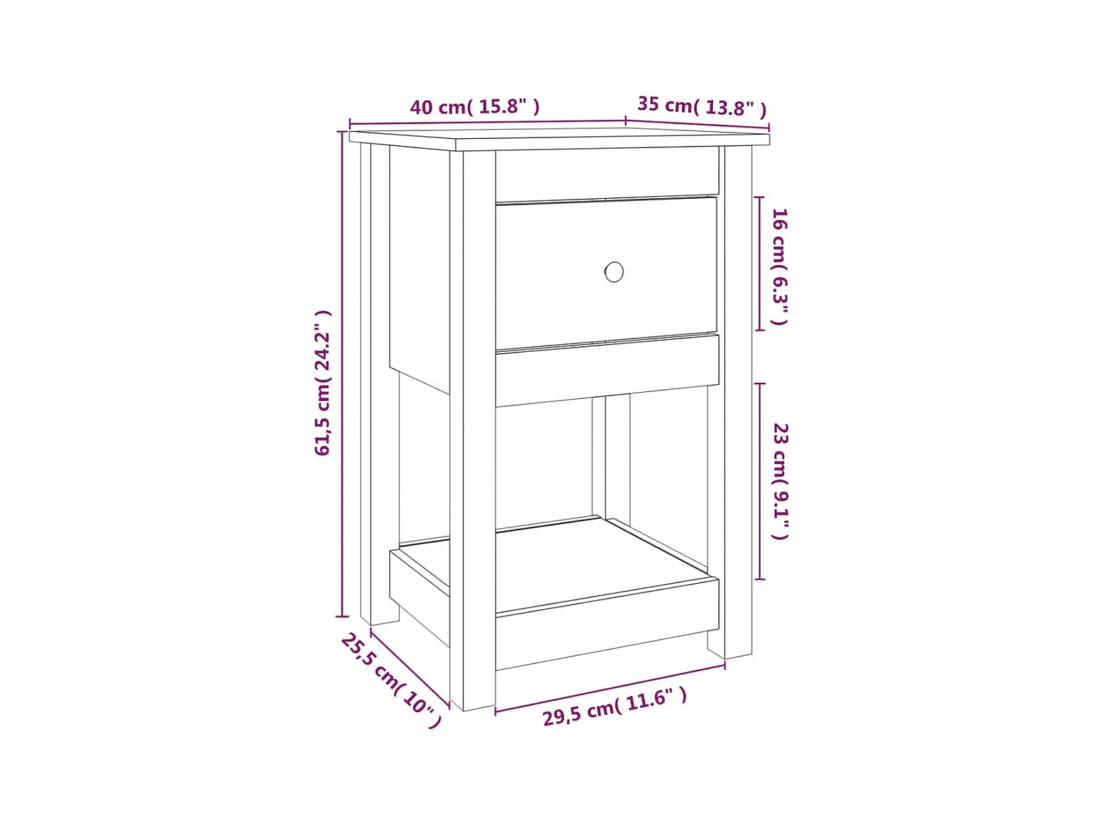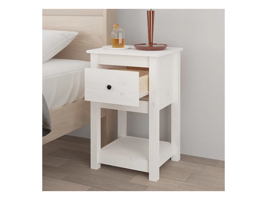 Fourmies Table de chevet Blanc 40x35x61,5 cm Bois de pin massif
