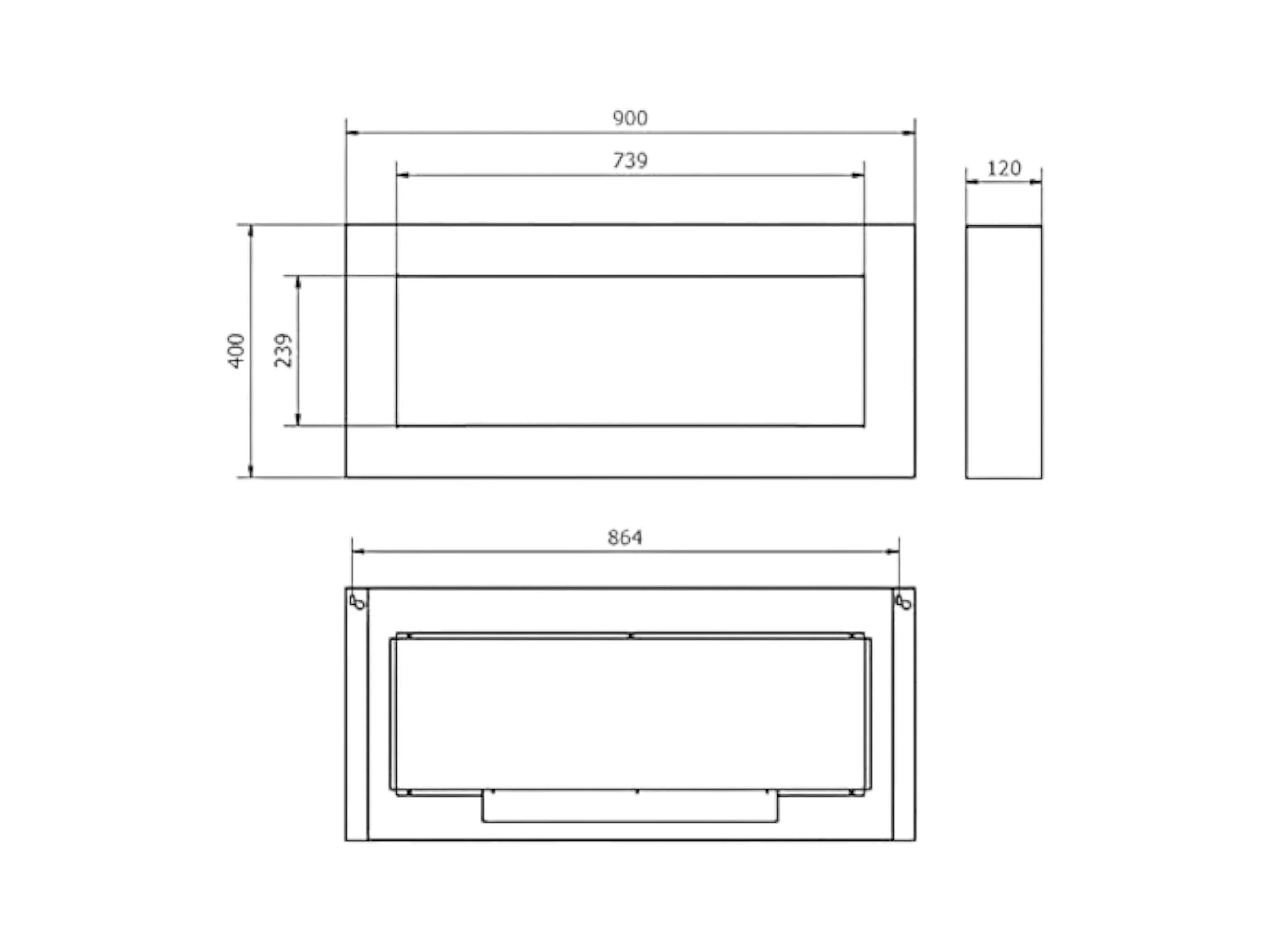 Foyer à bioéthanol Zagreb, Capacité 0,75 L Made in Italy, 90x12x40h cm Noir