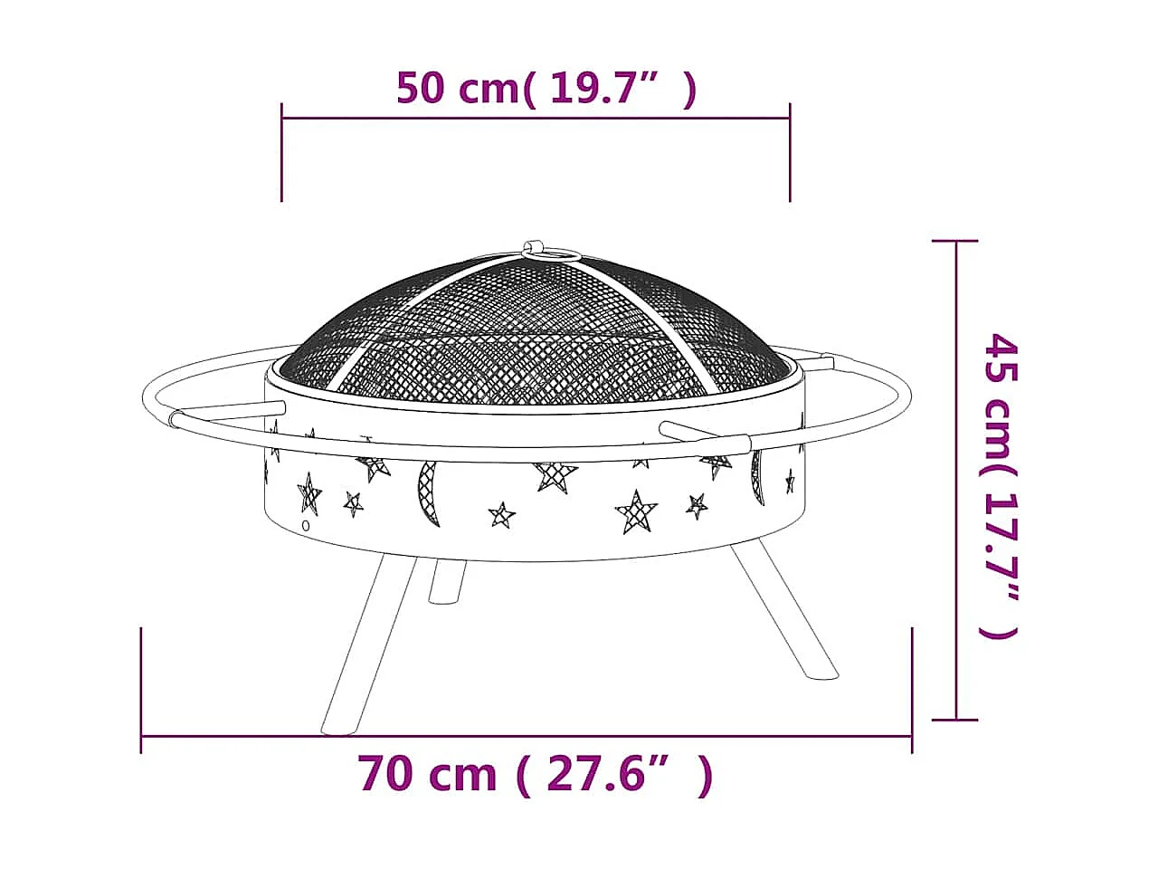 Foyer avec tisonnier 70 cm XXL acier