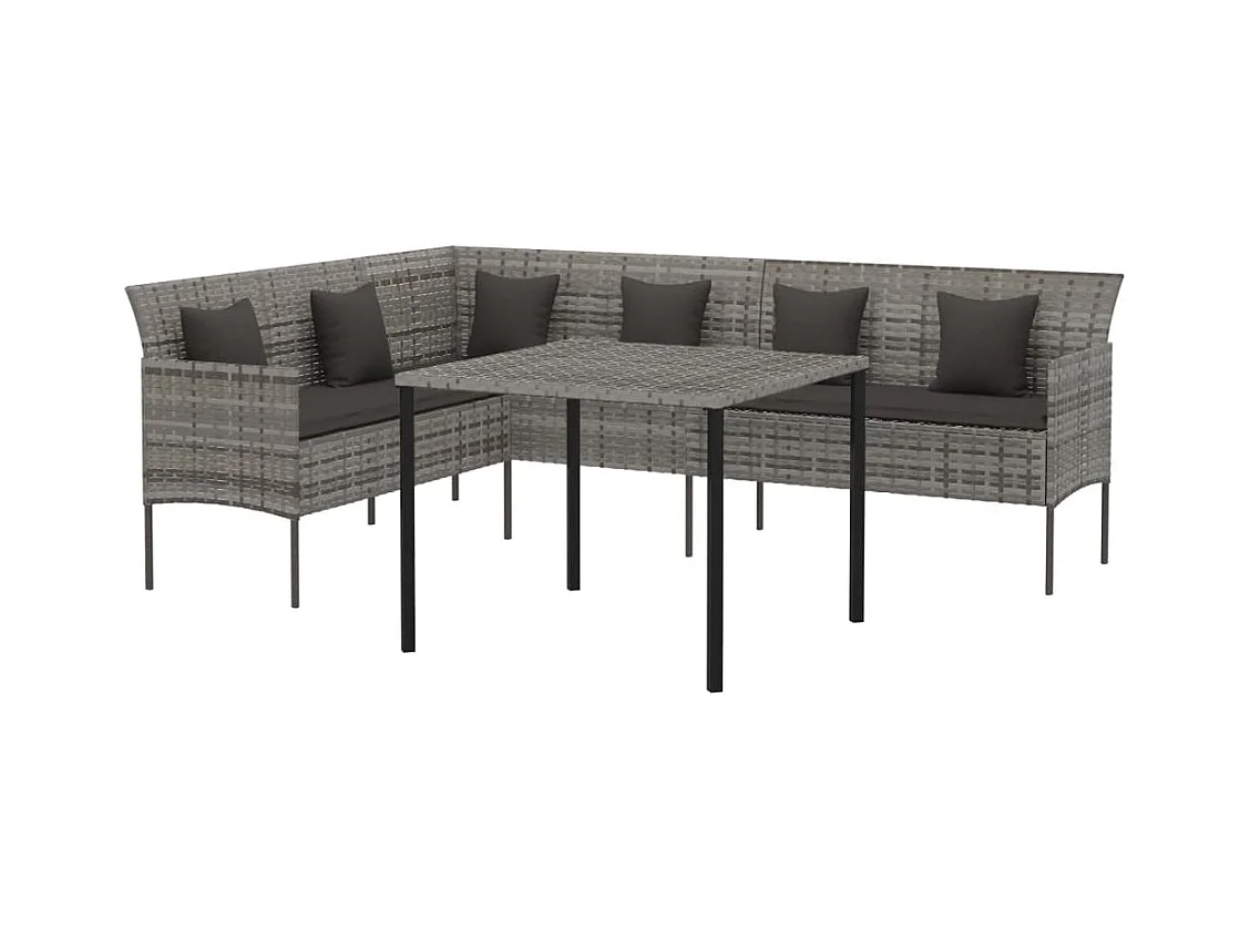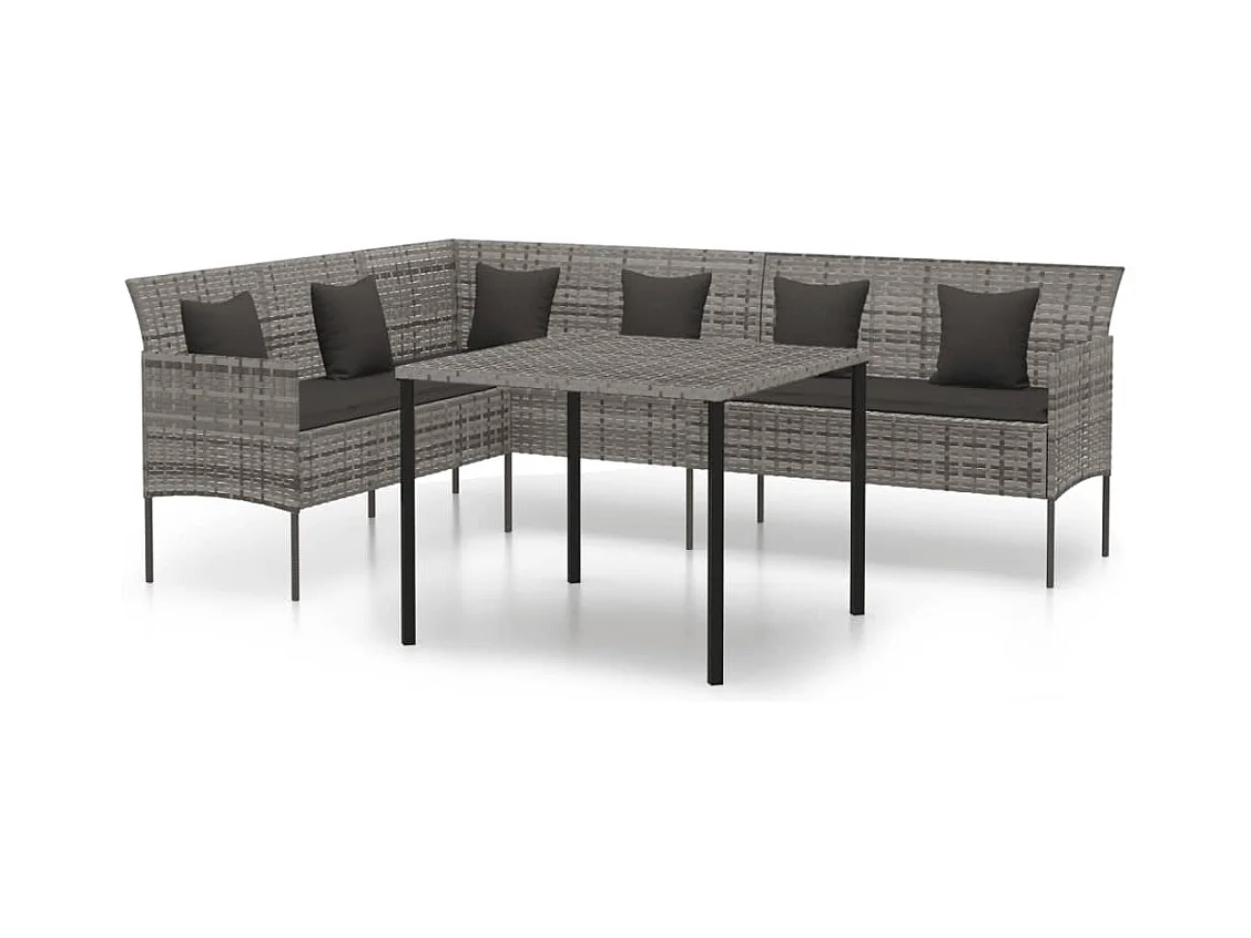 Ensemble à manger de jardin 3pcs coussins gris clair poly rotin FR85060