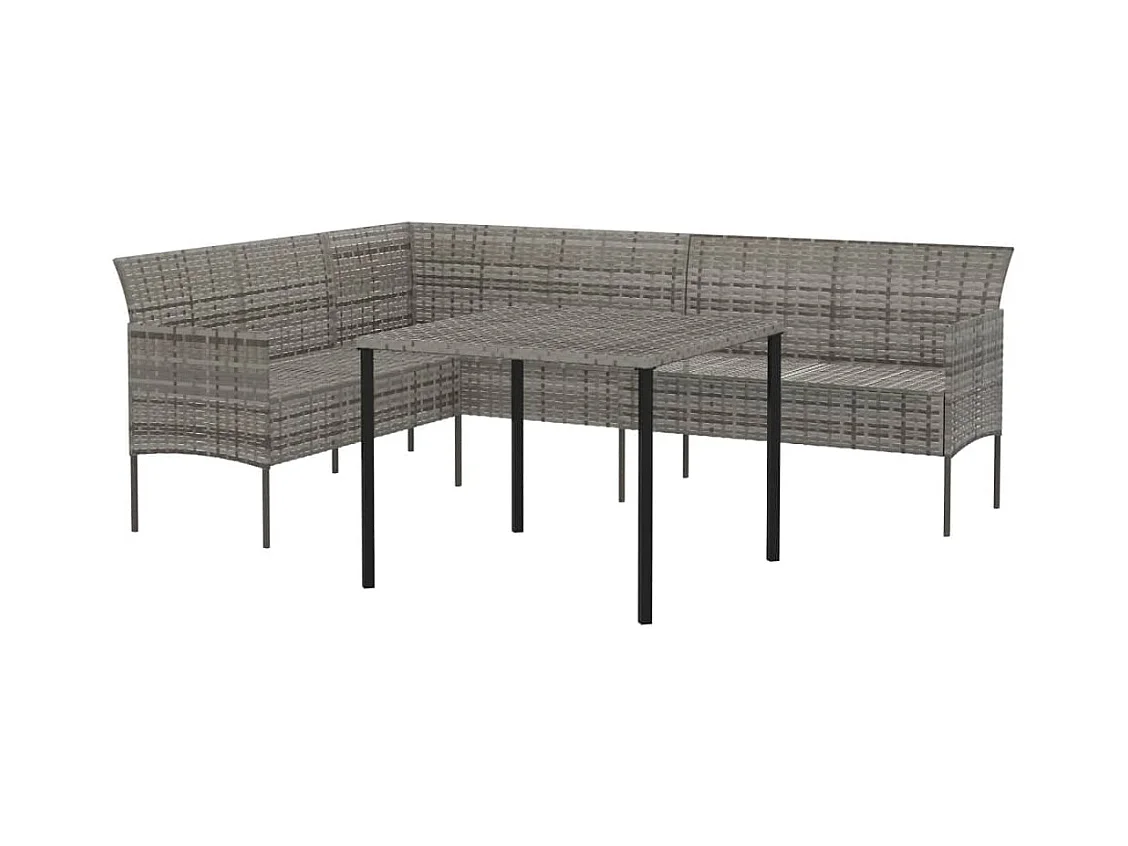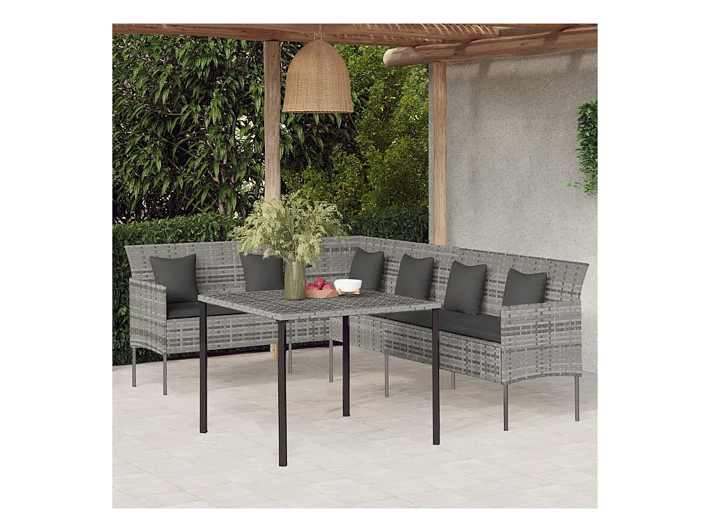 Ensemble à manger de jardin 3pcs coussins gris clair poly rotin FR68345