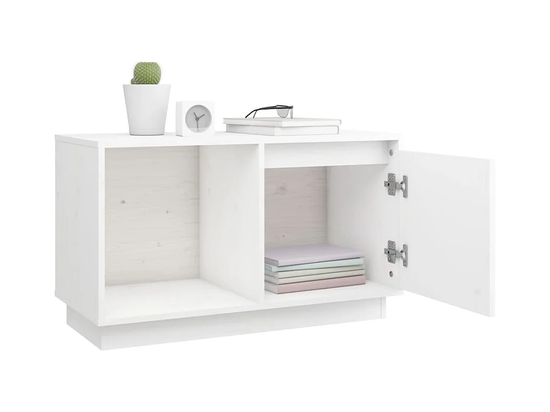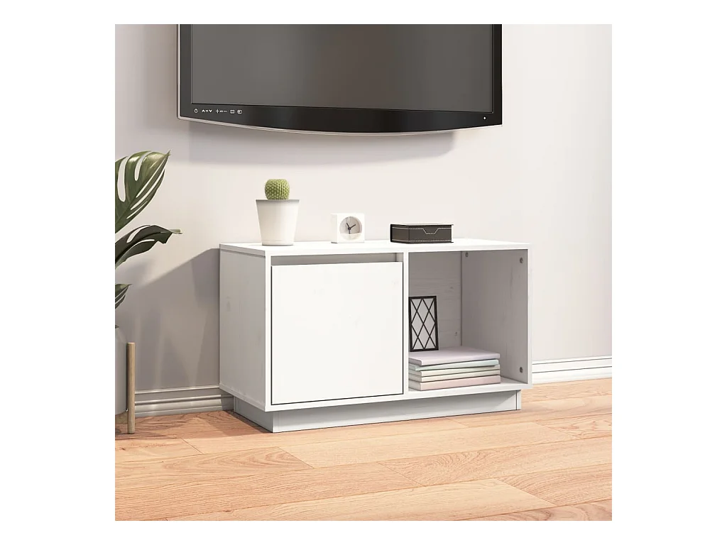 François-Paul Meuble TV Blanc 74x35x44 cm Bois de pin massif