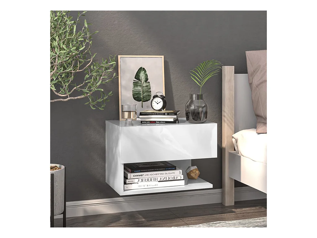 San Jose Tables de chevet murales 2 pcs Blanc brillant