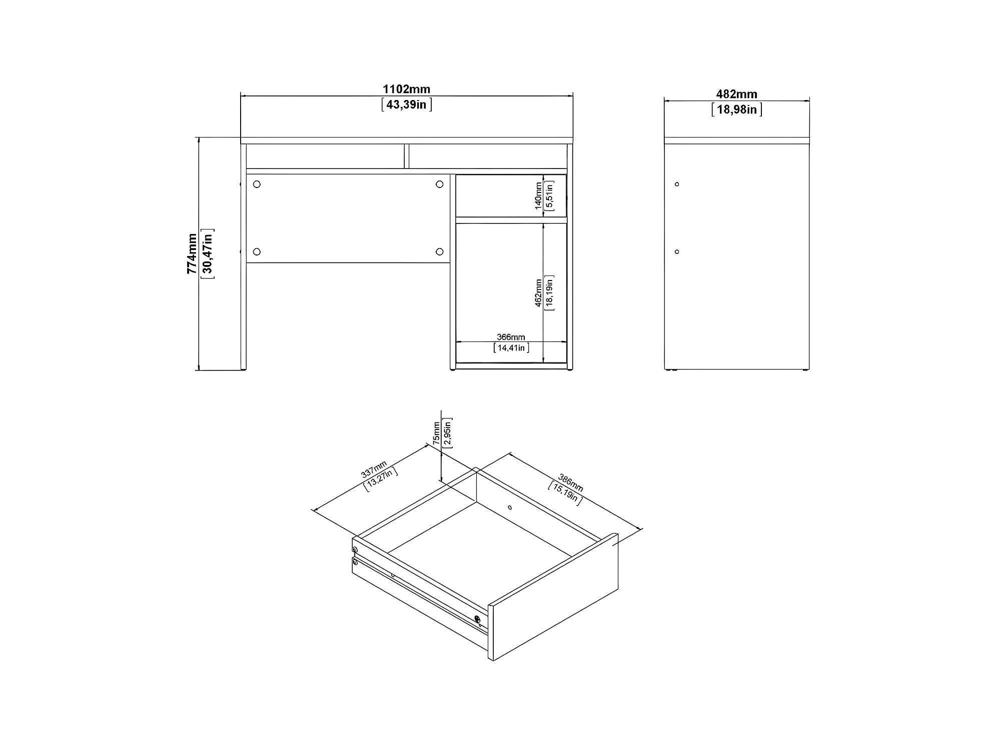 Fula Bureau 1 tiroir et 1 porte, teinte Hickory.