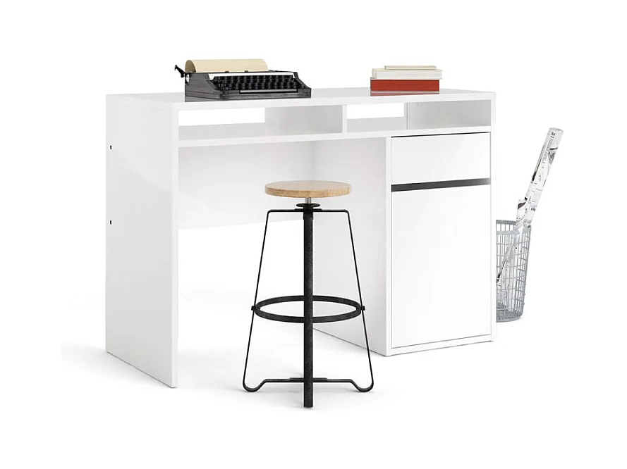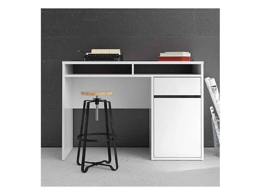 Fula Bureau 2 pièces, 1 tiroir et 1 porte, blanc brillant.