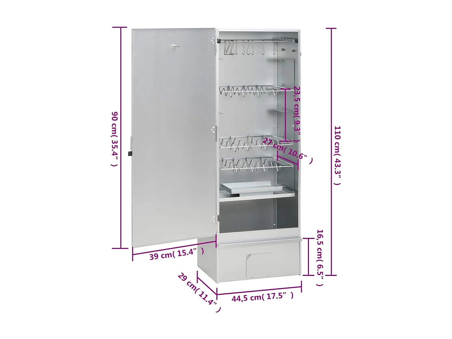 Fumoir pour four à barbecue avec copeaux de bois 44,5x29x110 cm