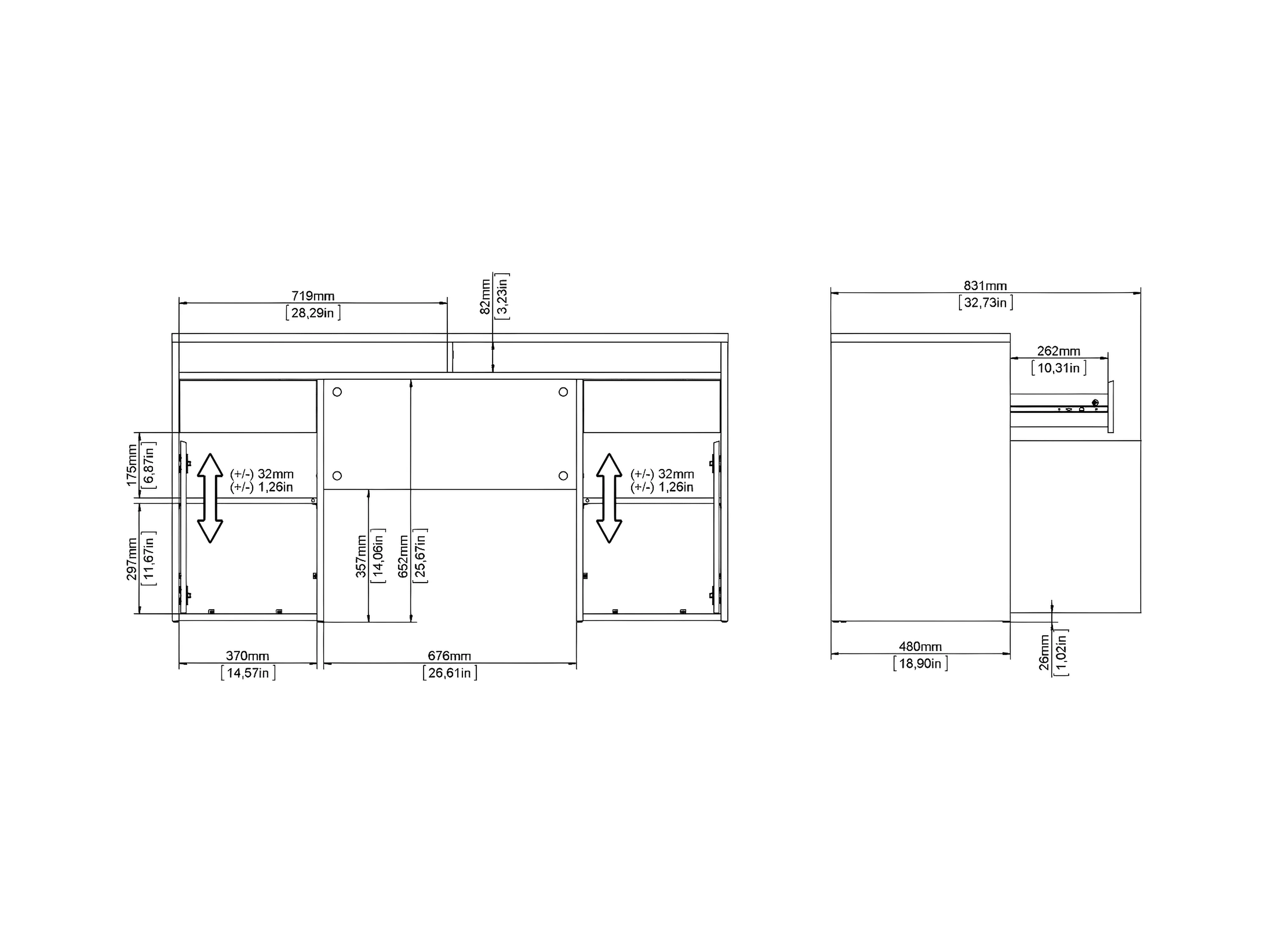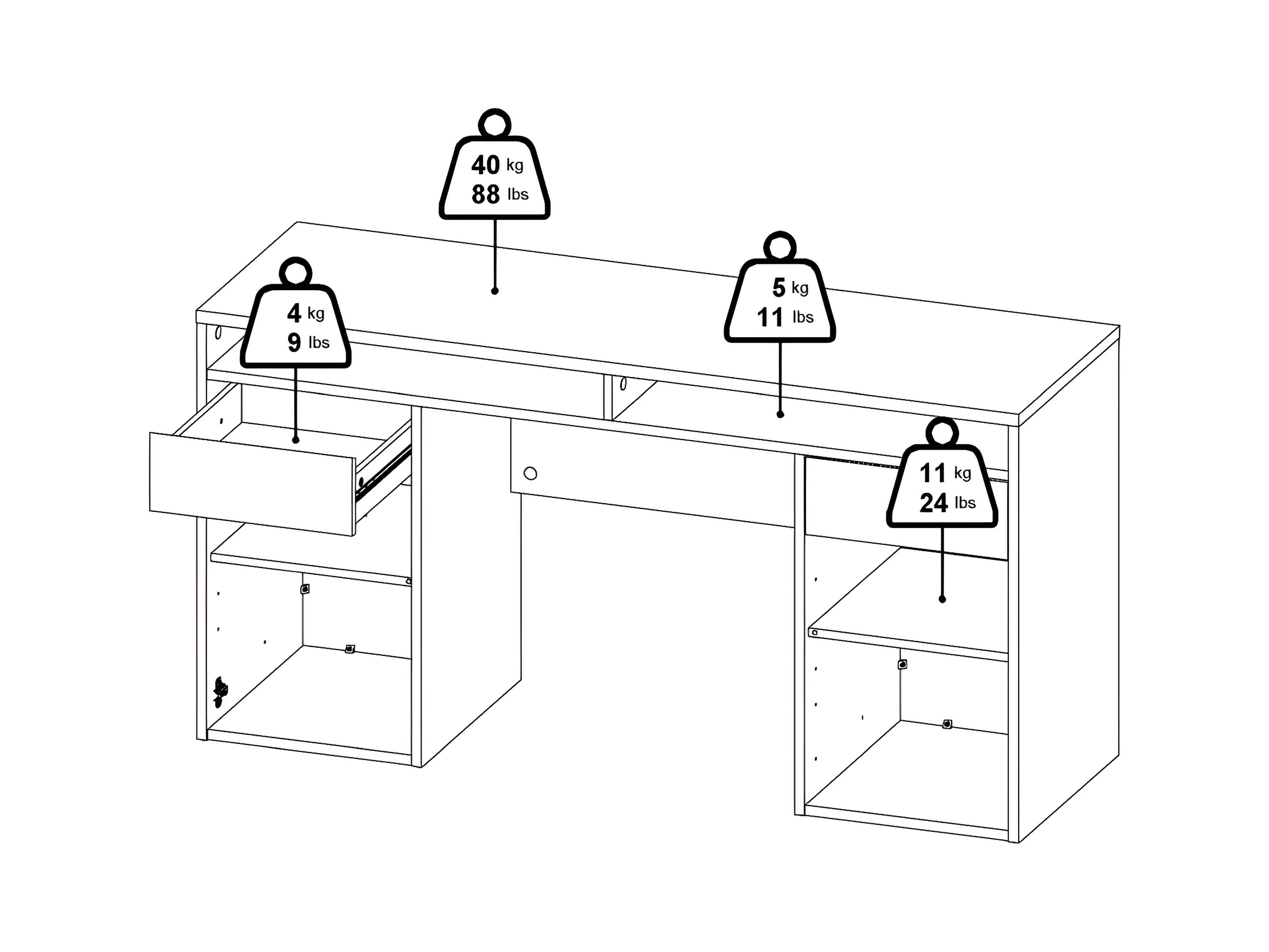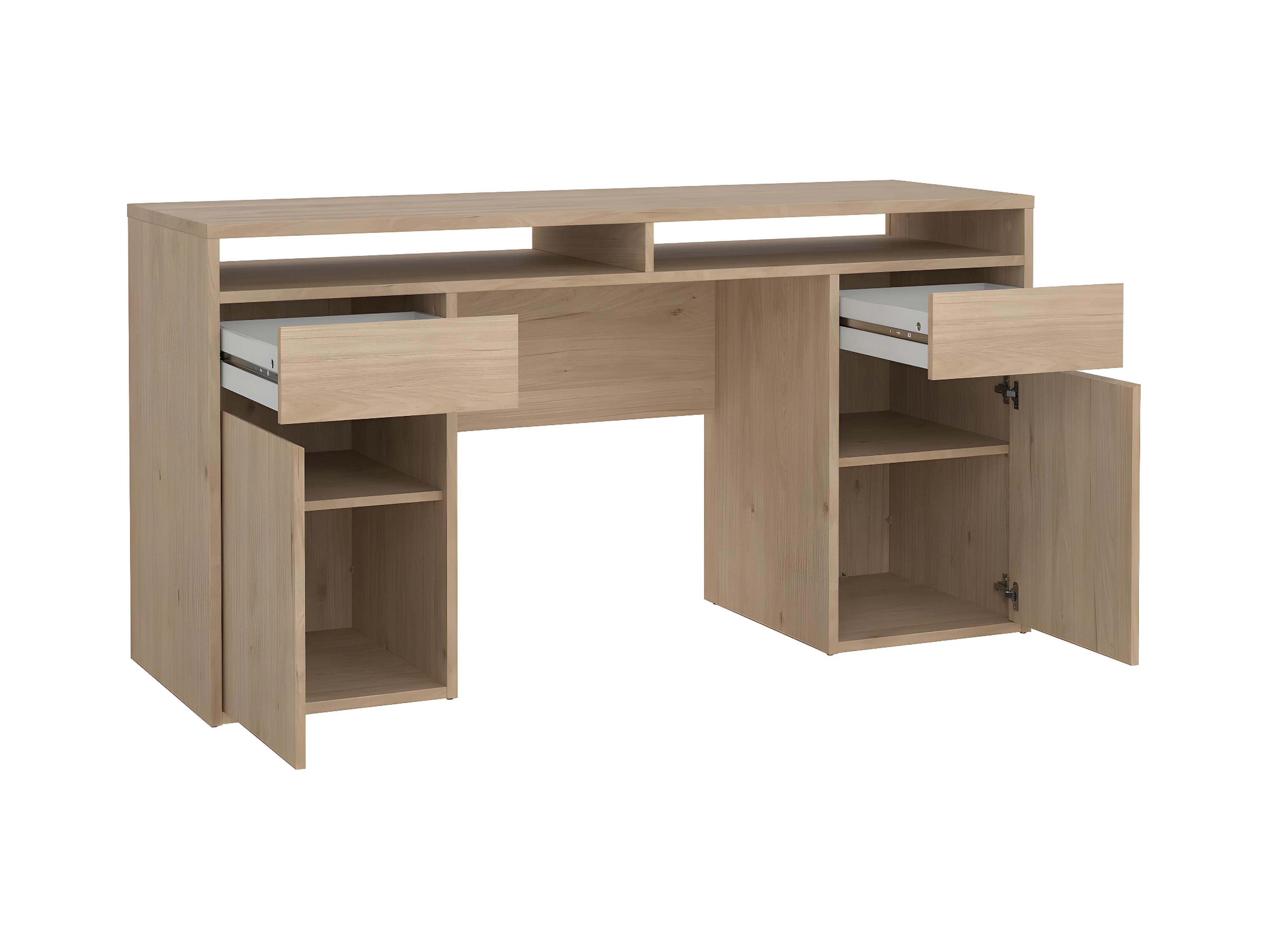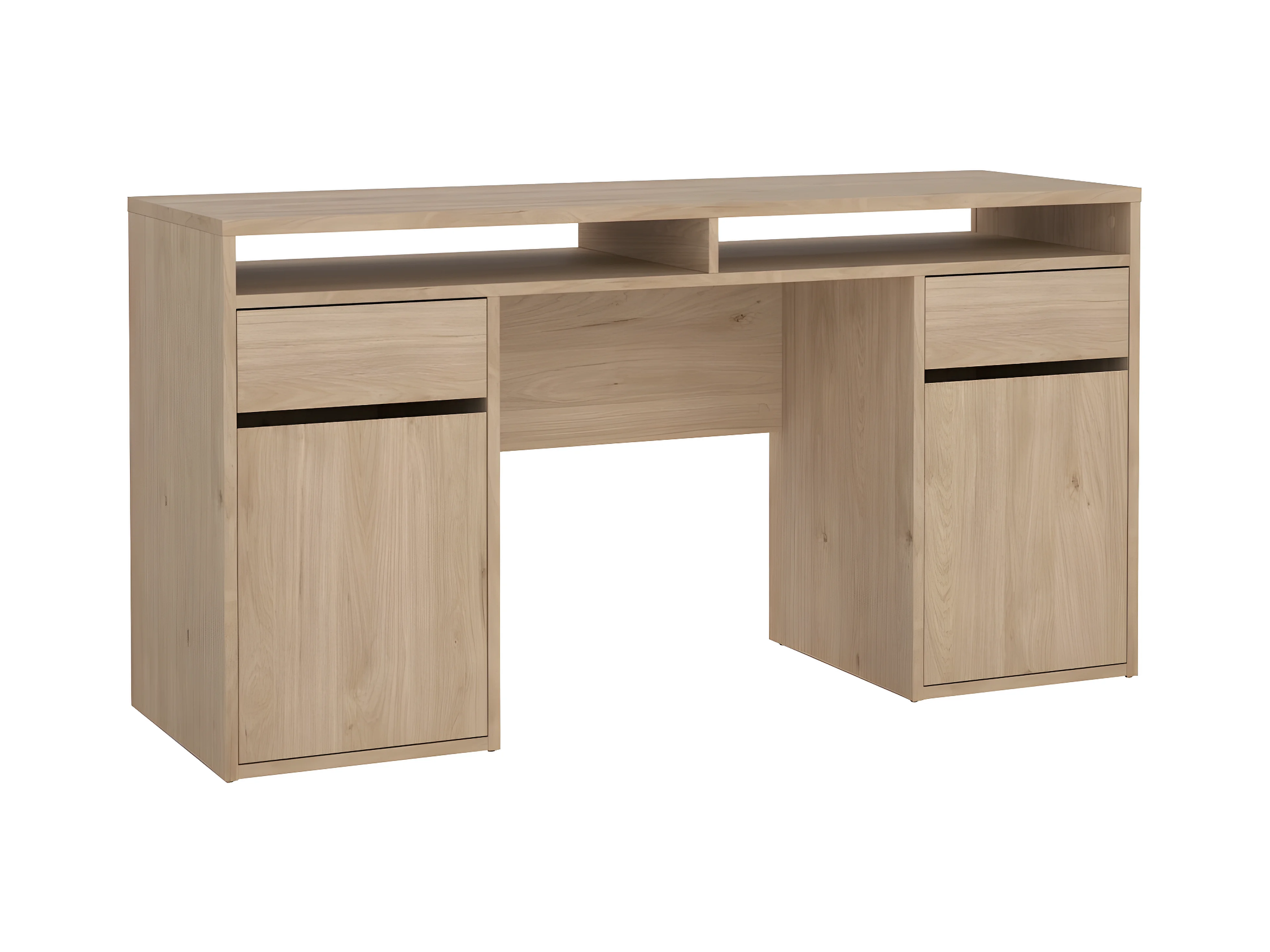 FunctionPlus bureau 2 portes 2 tiroirs noyer décor.