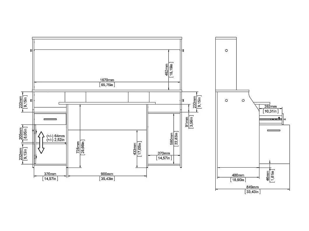 FunctionPlus bureau avec bibliothèque tablettes 1 porte 1 tiroir gris mat.