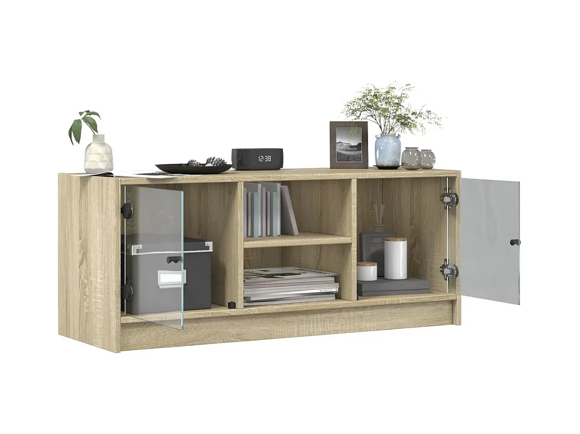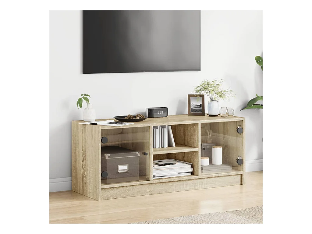 Ilgar Meuble TV avec portes en verre chêne sonoma 102x37x42 cm