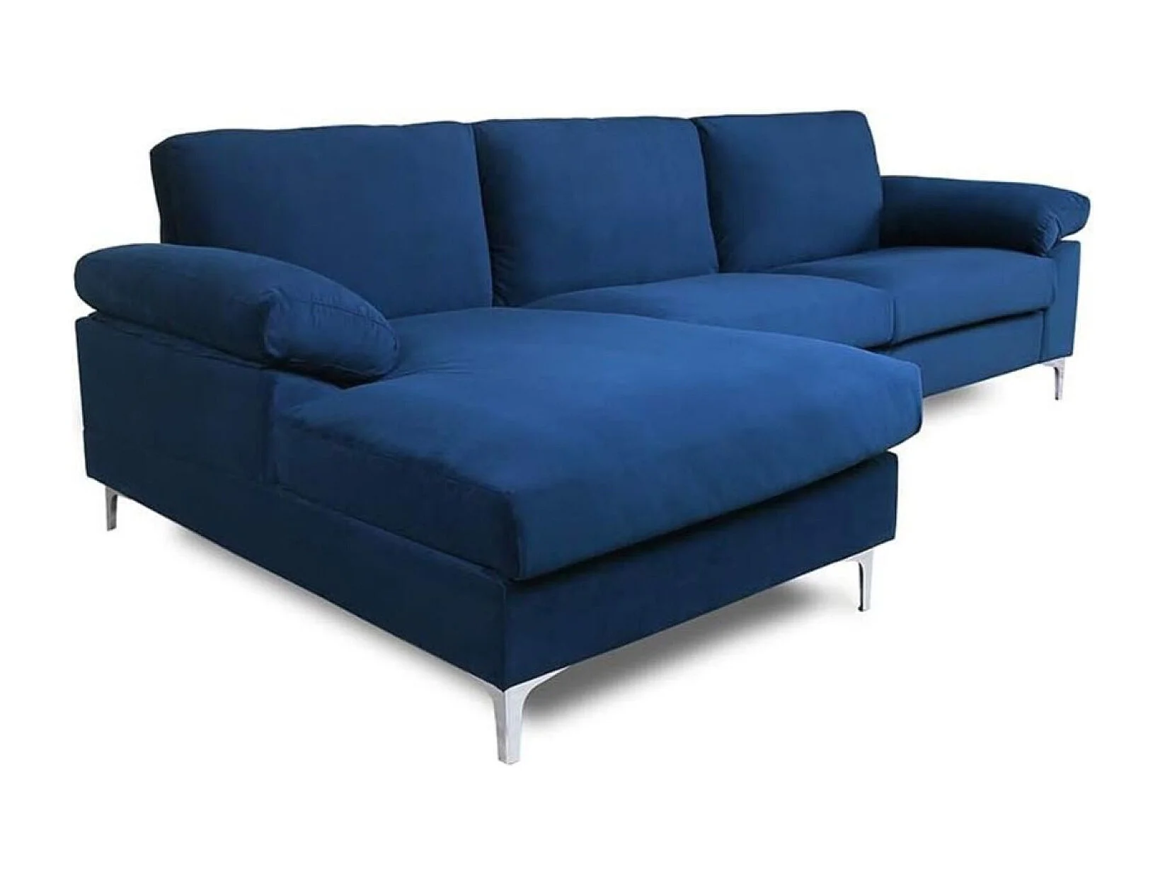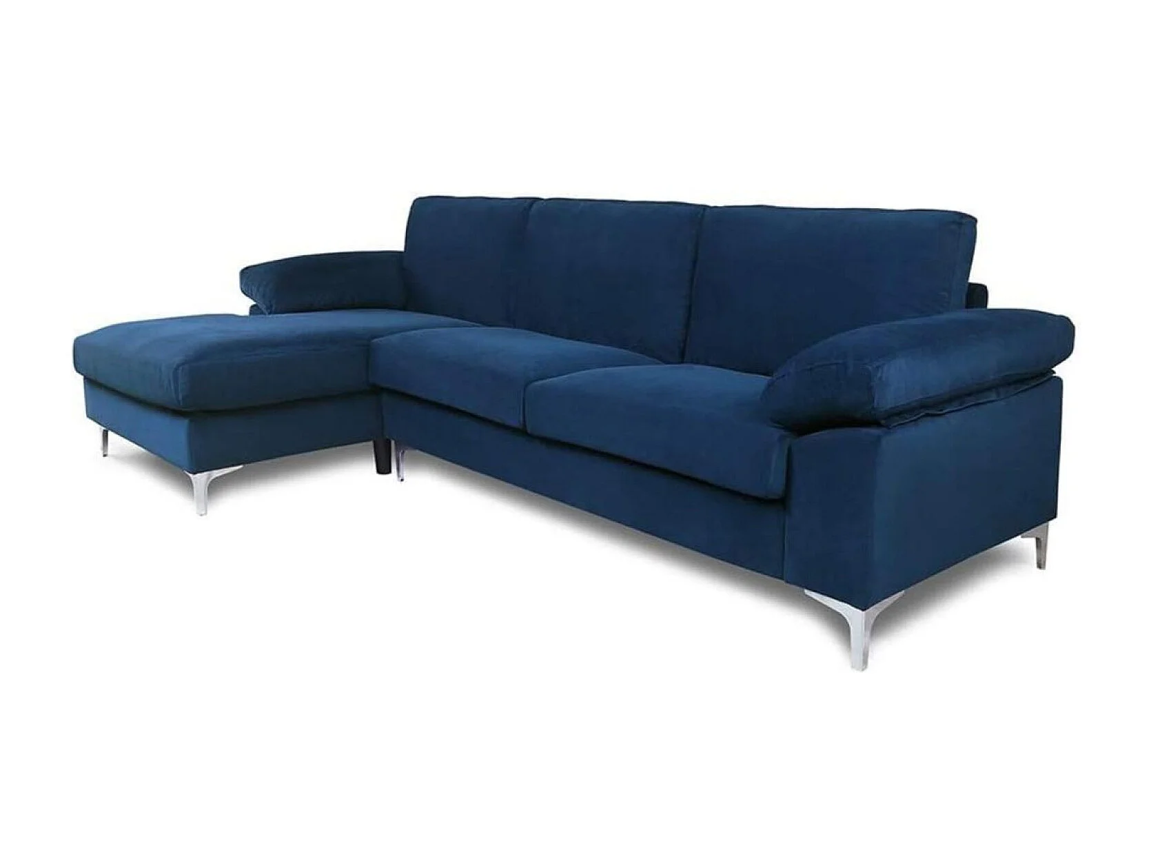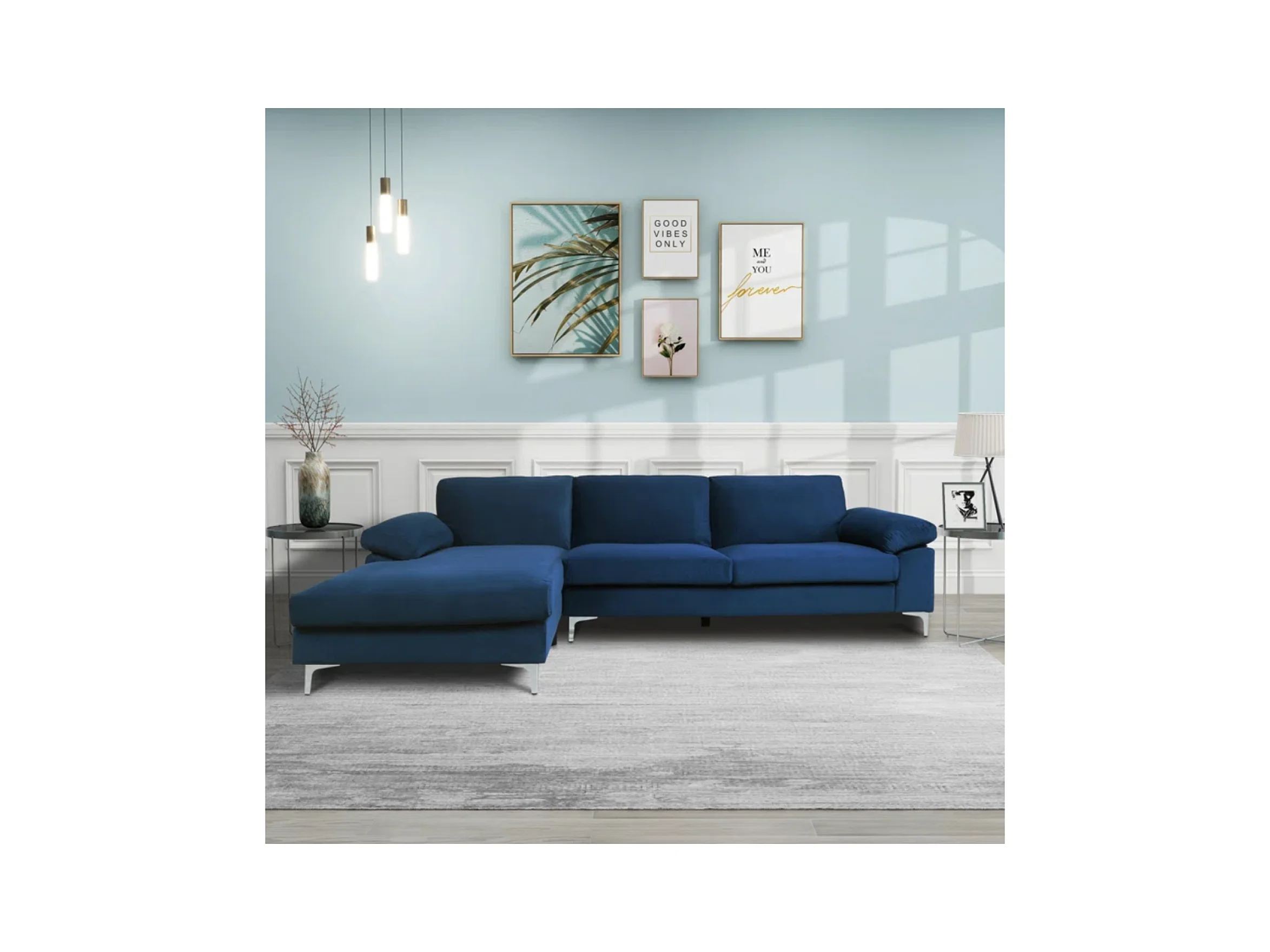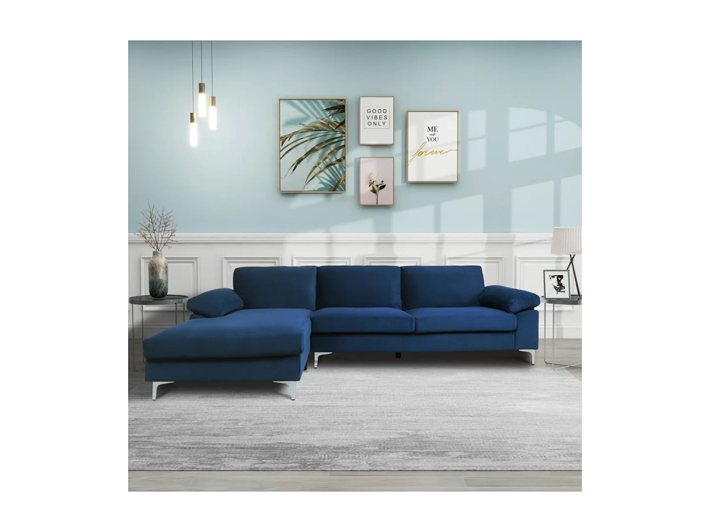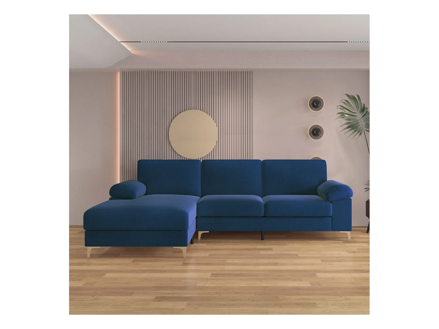 Canapé d'angle gauche 4-5 places en velours bleu GALWAY
