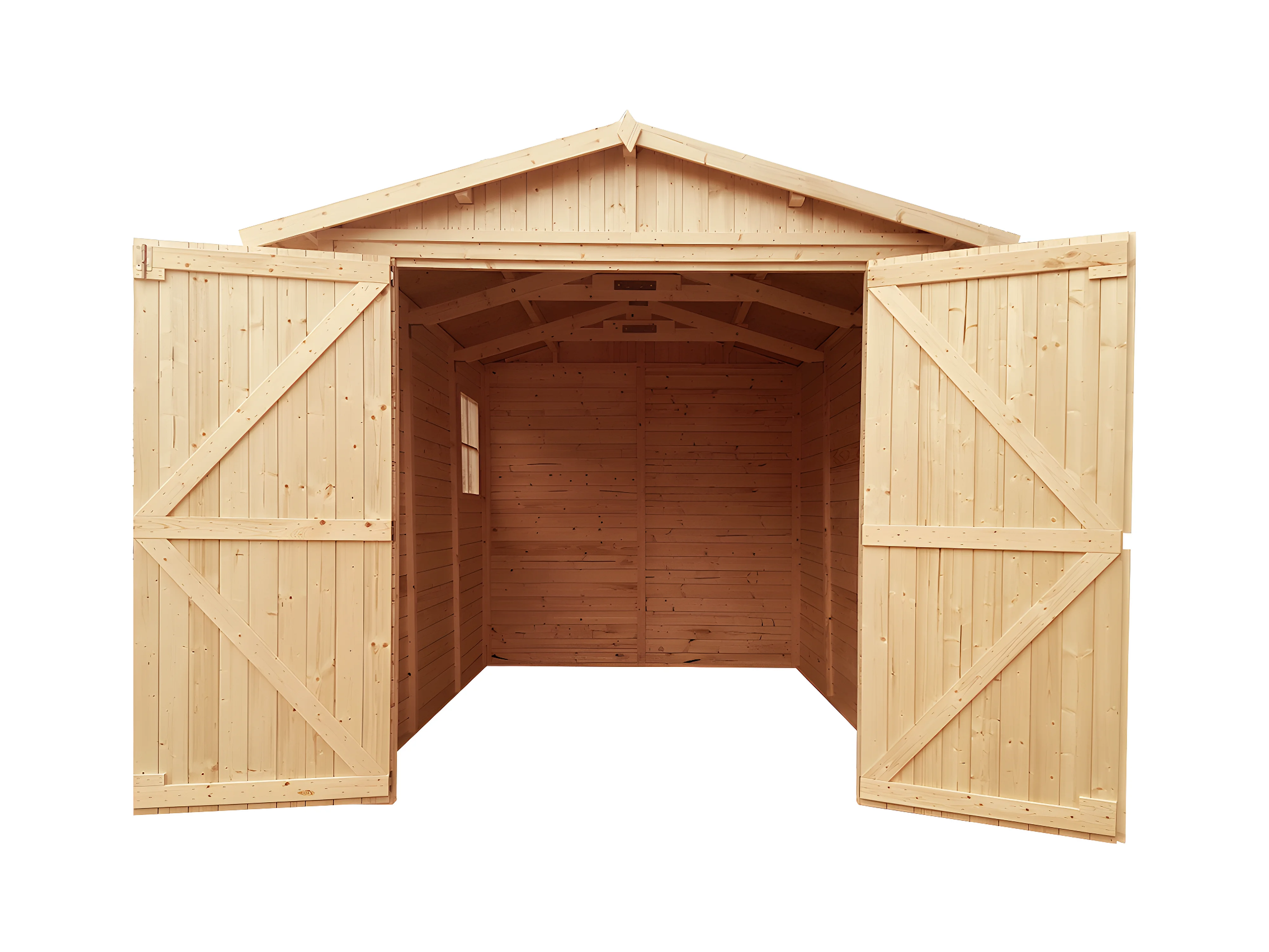 GARAGE en Bois Naturel - H222x516x324 cm/15 m² - TIMBELA M101