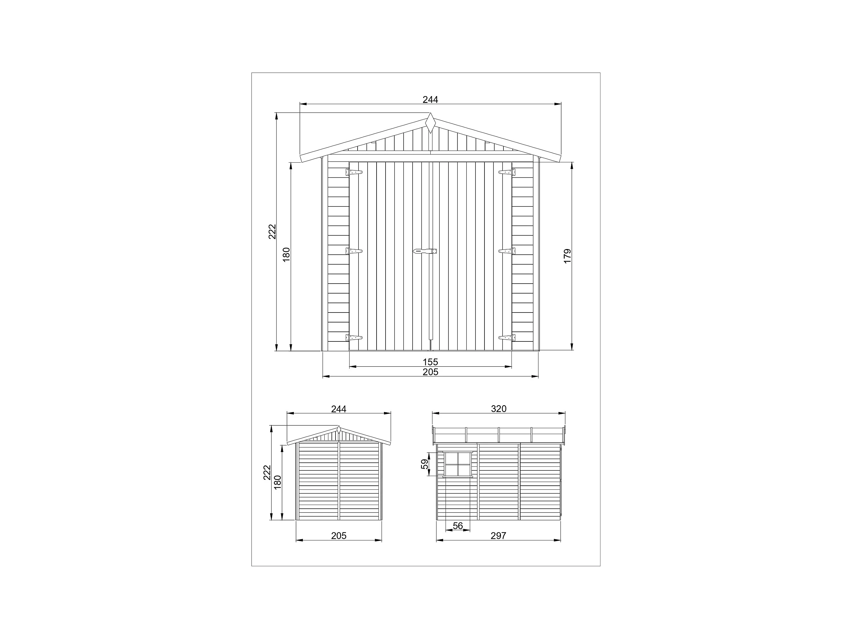 GARAGE en Bois Naturel - H222x244x320 cm/ 6 m² - TIMBELA M105