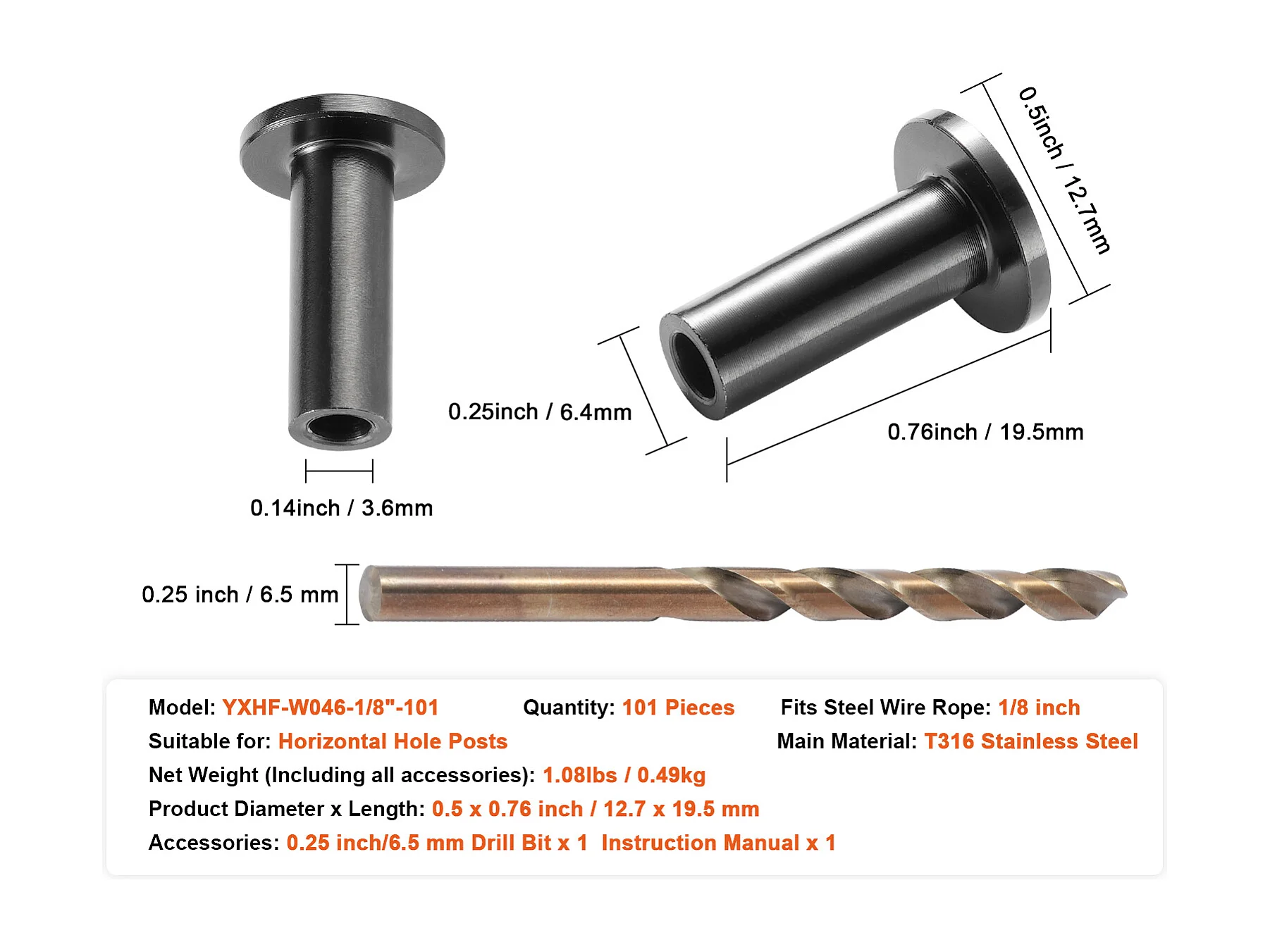 Garde-corps SucceBuy Lot de 101 Manchons en Acier Inoxydable T316 pour Câble Métallique de 3,2 mm